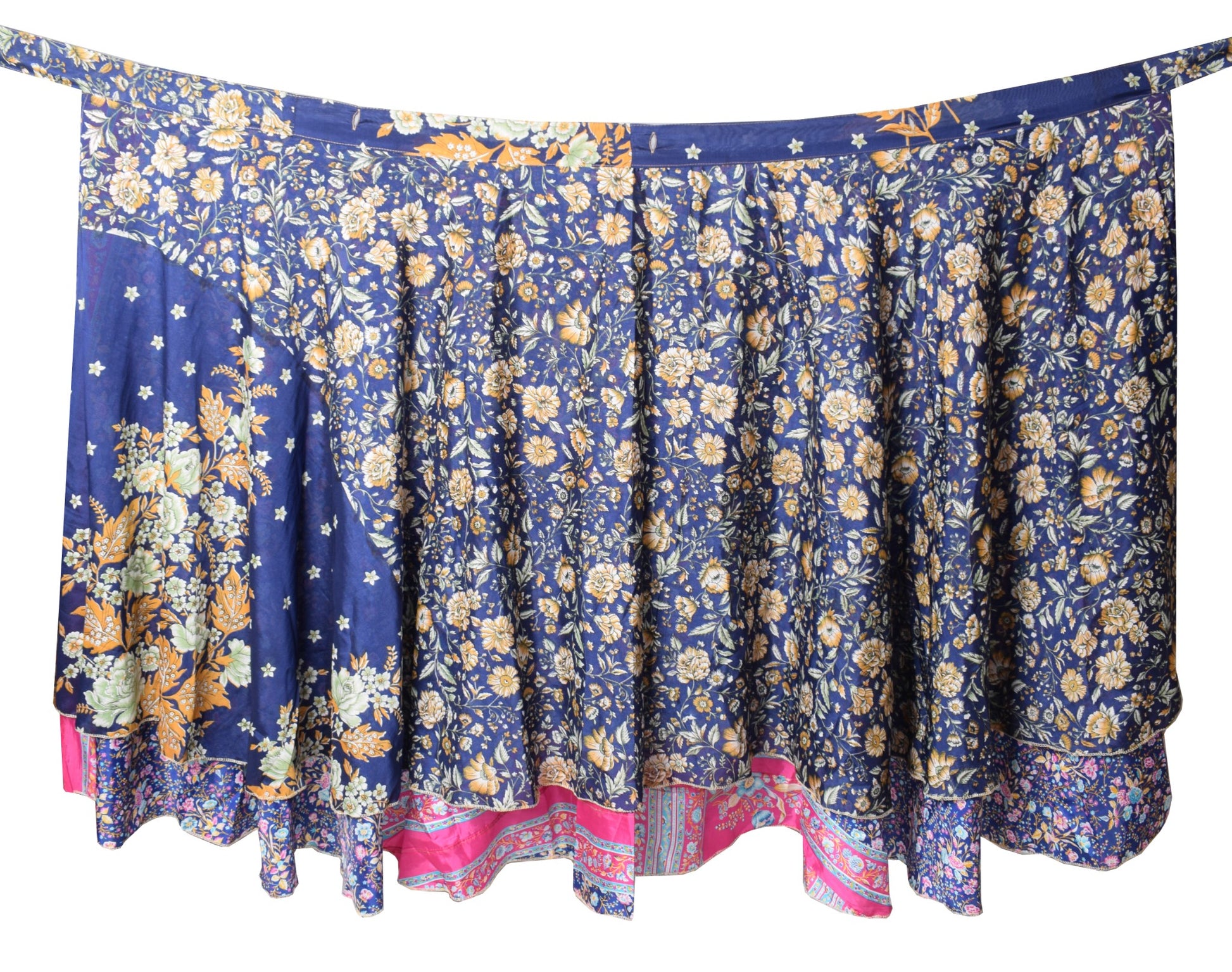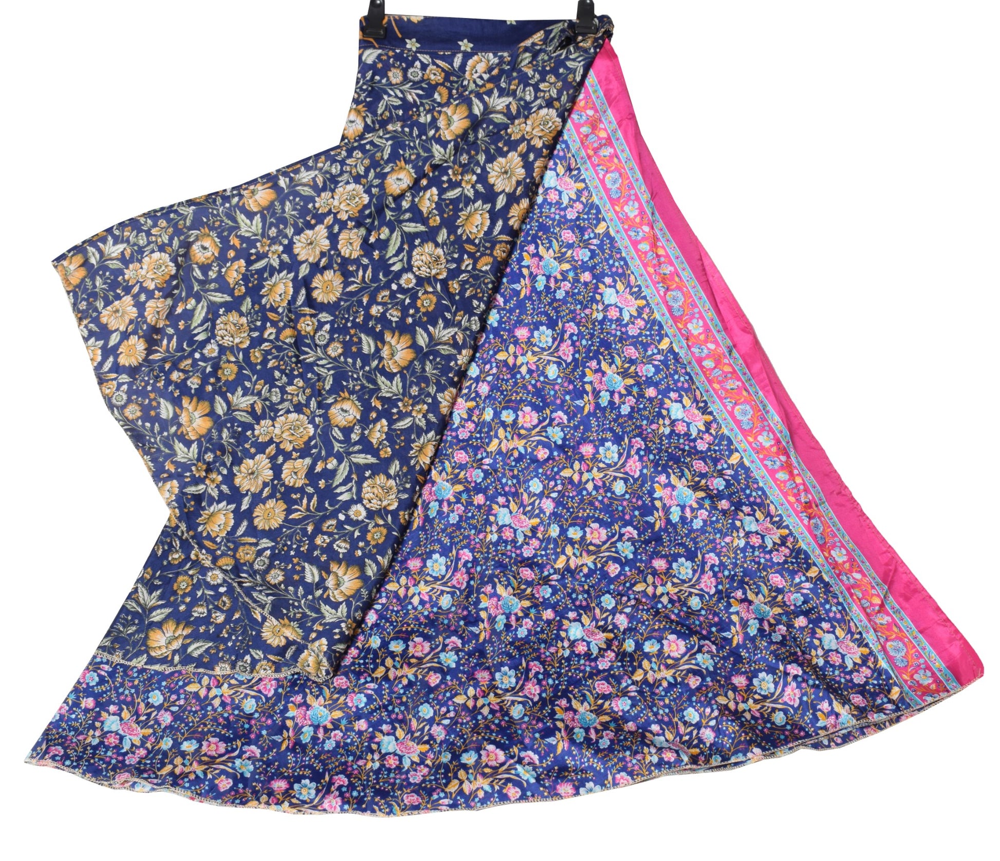 Sushila Vintage Silk Saree Magic Wrap Reversible Floral Blue Skirt Beach Dress