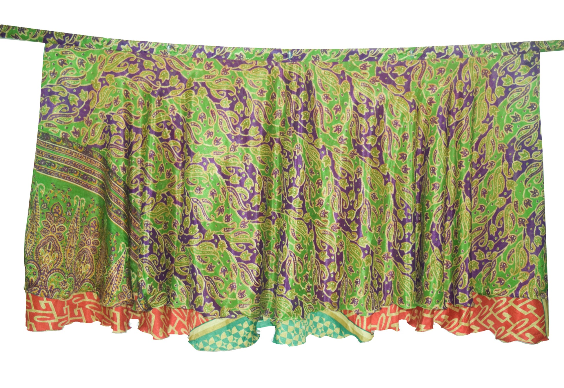 This reversible 2‑Layer Magic Wrap Skirt is crafted from pre‑owned vintage Art or Artificial Silk saree fabric, showcasing a charming green as per images pattern for a perfect blend of style and sustainability. Ideal for beach outings, casual wear, or versatile styling, these skirts are lightweight, comfortable, and uniquely patterned. The vibrant designs and flowing fabric make them ideal for pairing with shirts, T‑shirts, or Kurtis. These skirts can be styled in multiple ways, offering endless possibilities for fashion enthusiasts. For styling ideas, simply search for "magic wrap skirt tutorial" on YouTube.