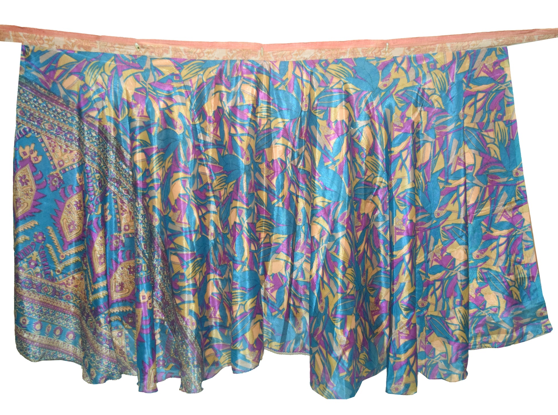 This reversible 2‑Layer Magic Wrap Skirt is crafted from pre‑owned vintage Art or Artificial Silk saree fabric, showcasing a charming blue as per images pattern for a perfect blend of style and sustainability. Ideal for beach outings, casual wear, or versatile styling, these skirts are lightweight, comfortable, and uniquely patterned. The vibrant designs and flowing fabric make them ideal for pairing with shirts, T‑shirts, or Kurtis. These skirts can be styled in multiple ways, offering endless possibilities for fashion enthusiasts. For styling ideas, simply search for "magic wrap skirt tutorial" on YouTube.