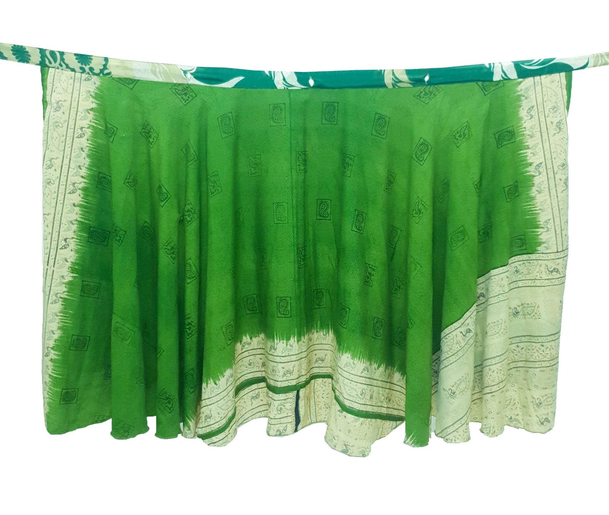 Sushila Vintage Silk Saree Magic Wrap Reversible Skirt Floral Green Beach Dress