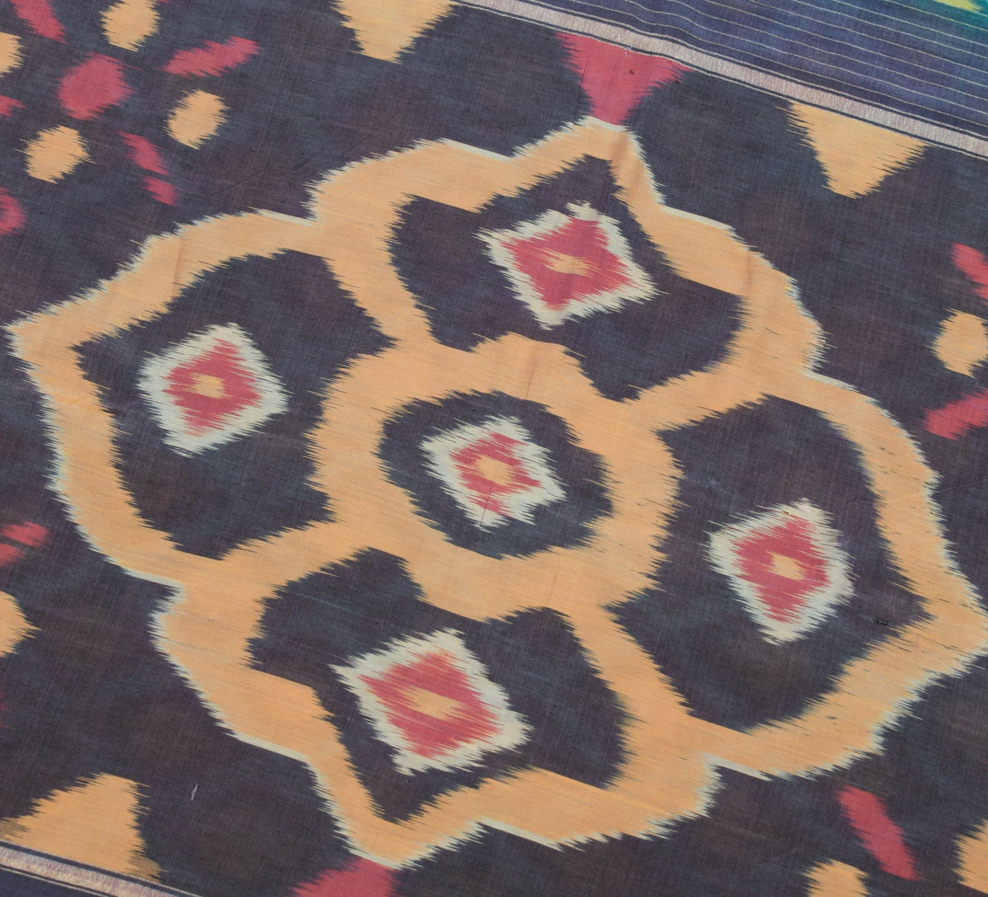 Sushila Vintage Sky Blue Saree Pure Cotton Silk Hand Woven Pochampally Ikat Sari