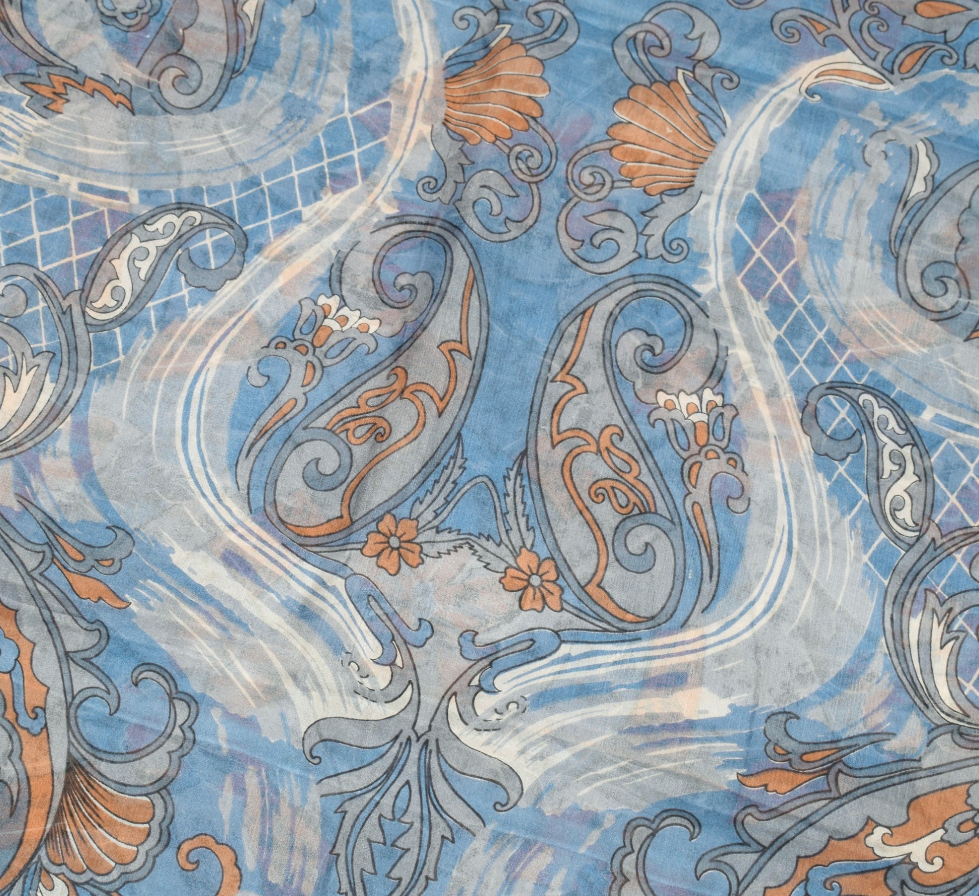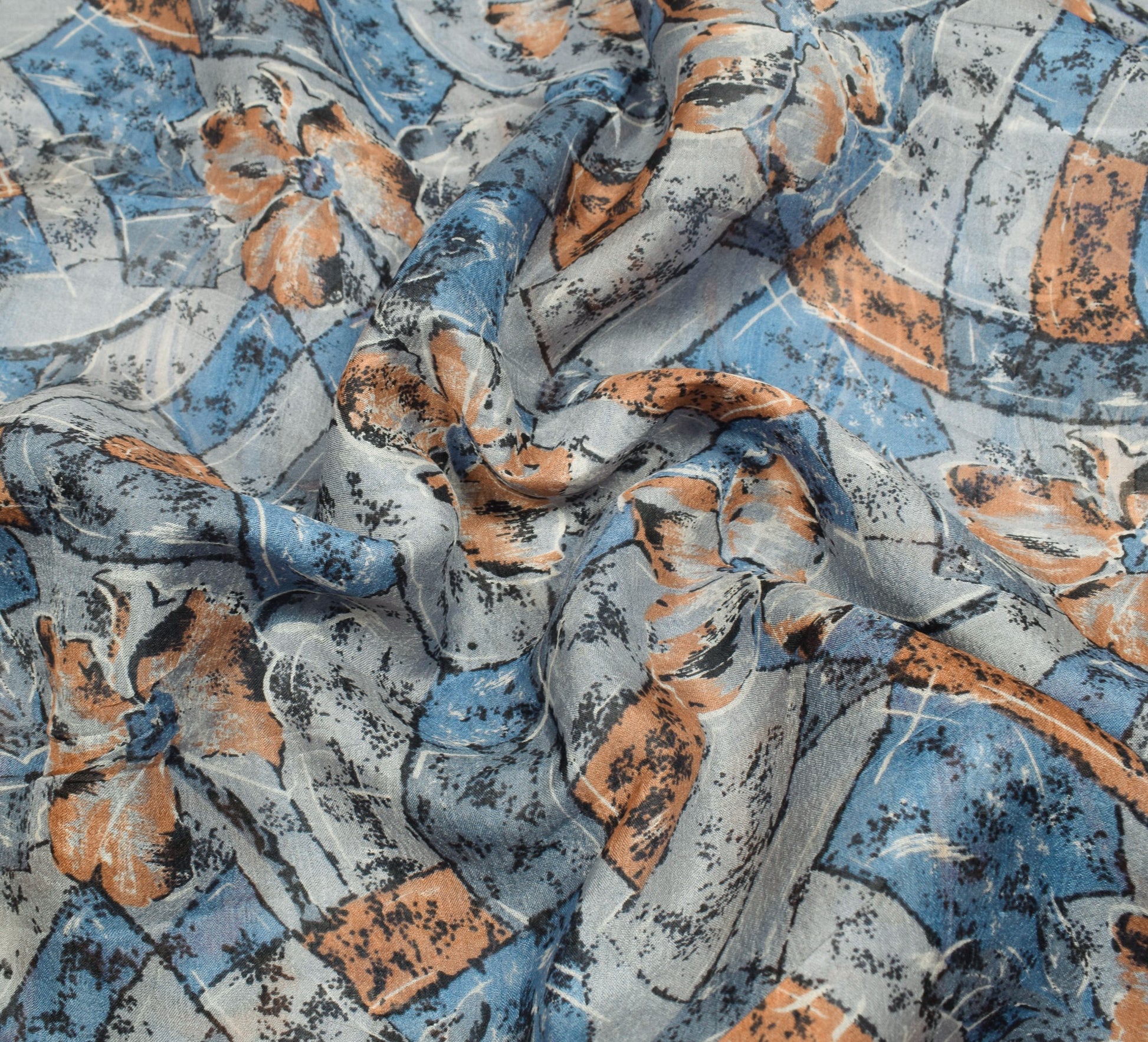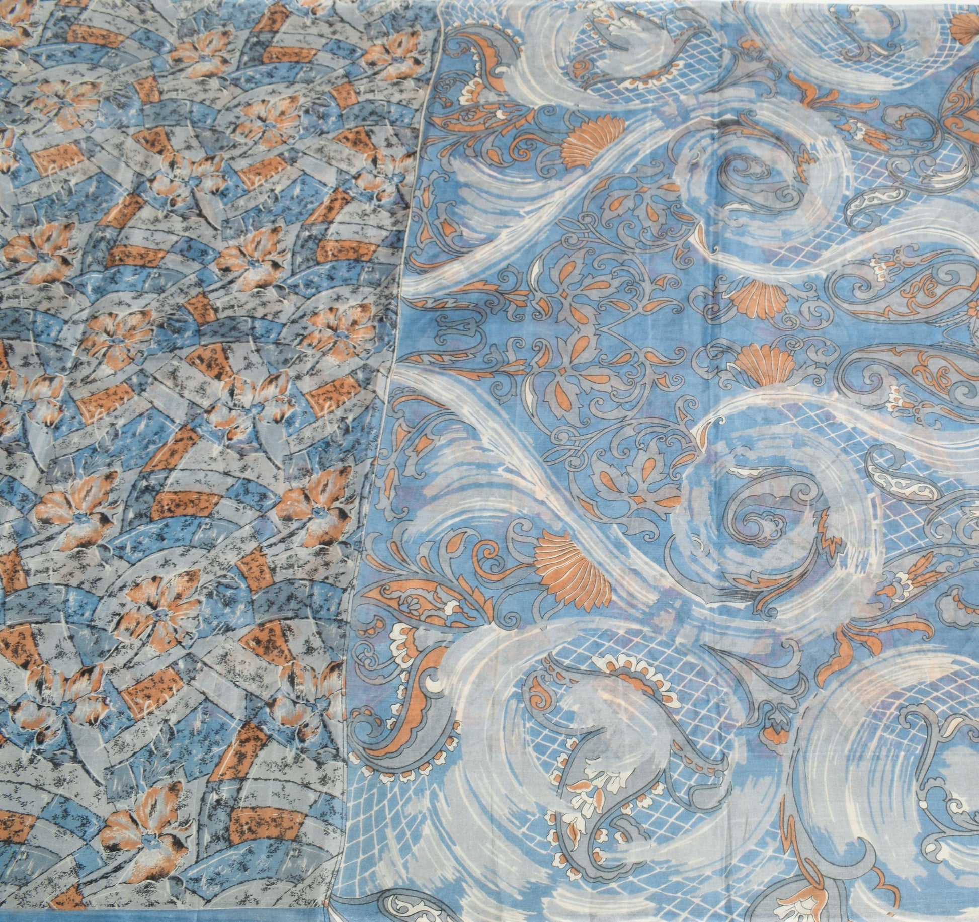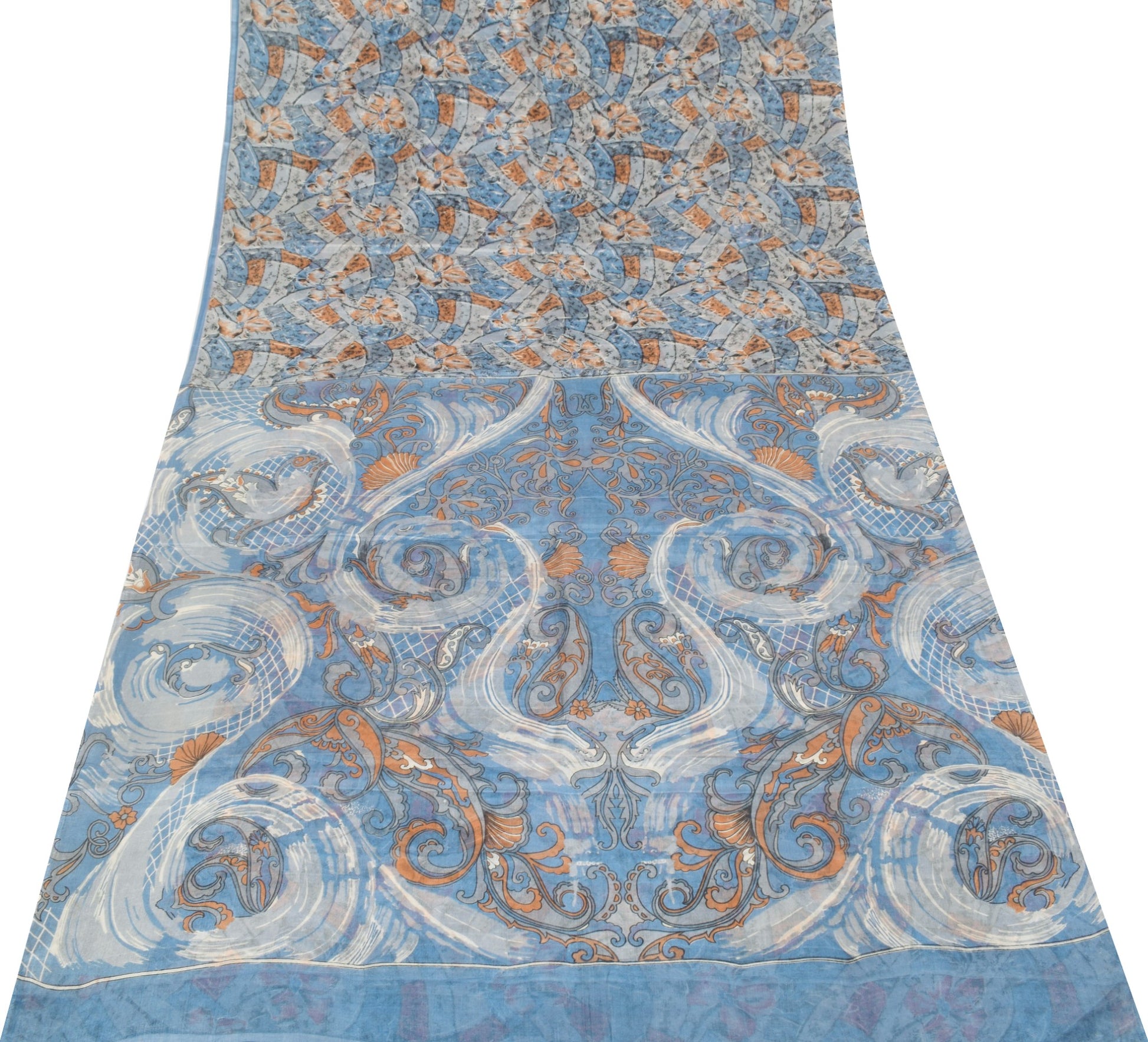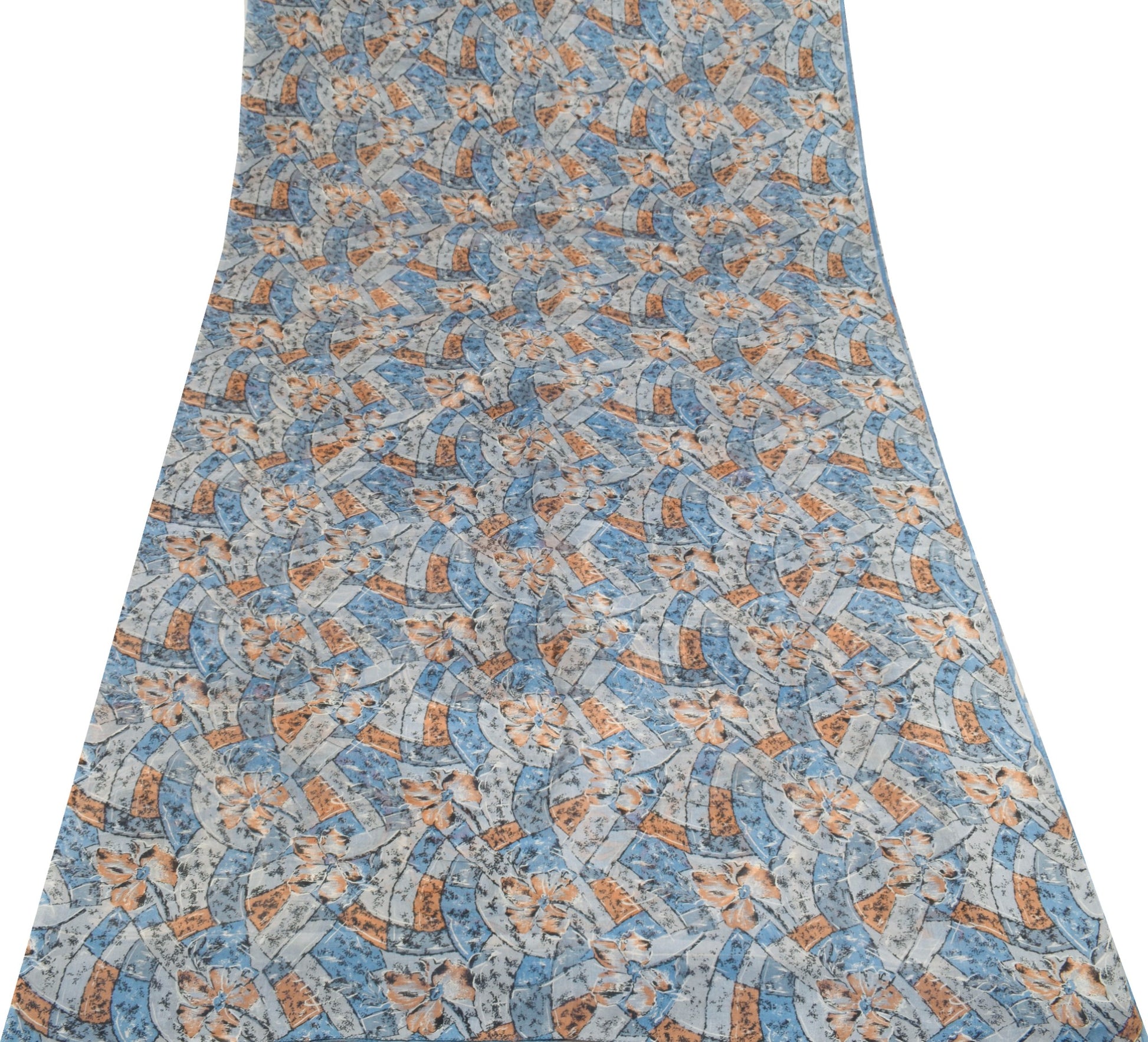 Sushila Vintage Steel Blue & Gray Saree 100% Pure Silk Printed Sari Craft Fabric