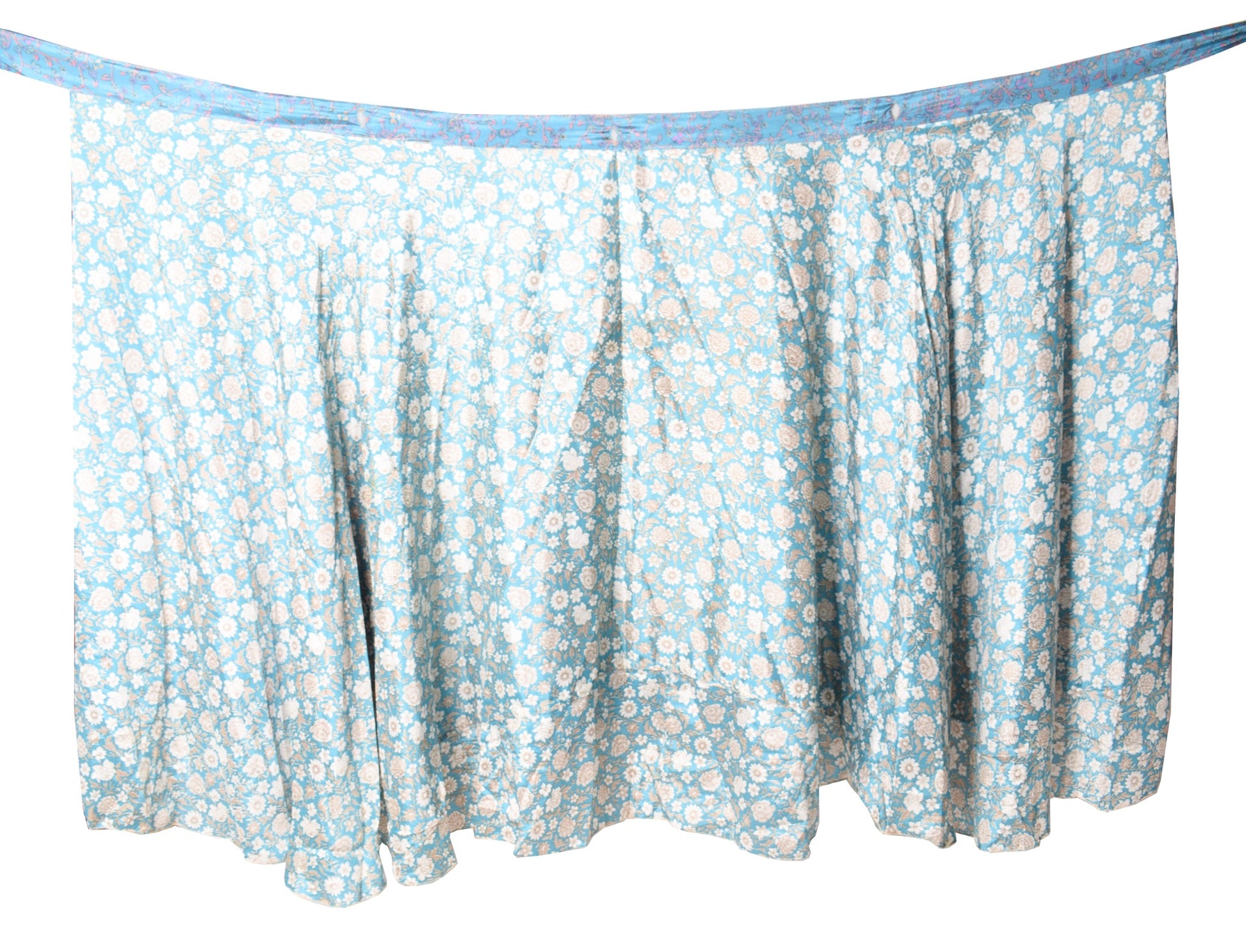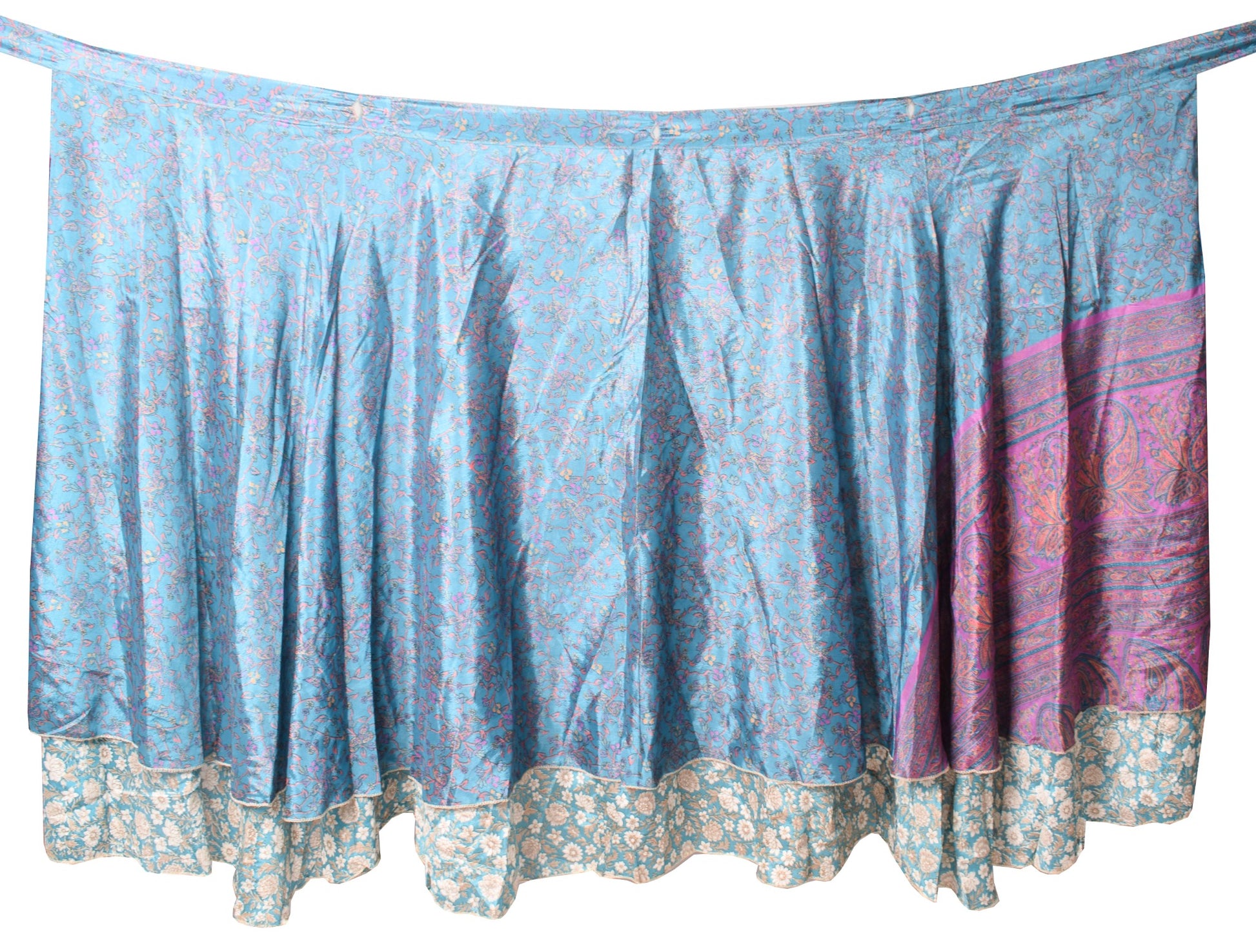 Sushila Vintage Teal Blue Silk Saree Magic Wrap Reversible Skirt Beach Dress