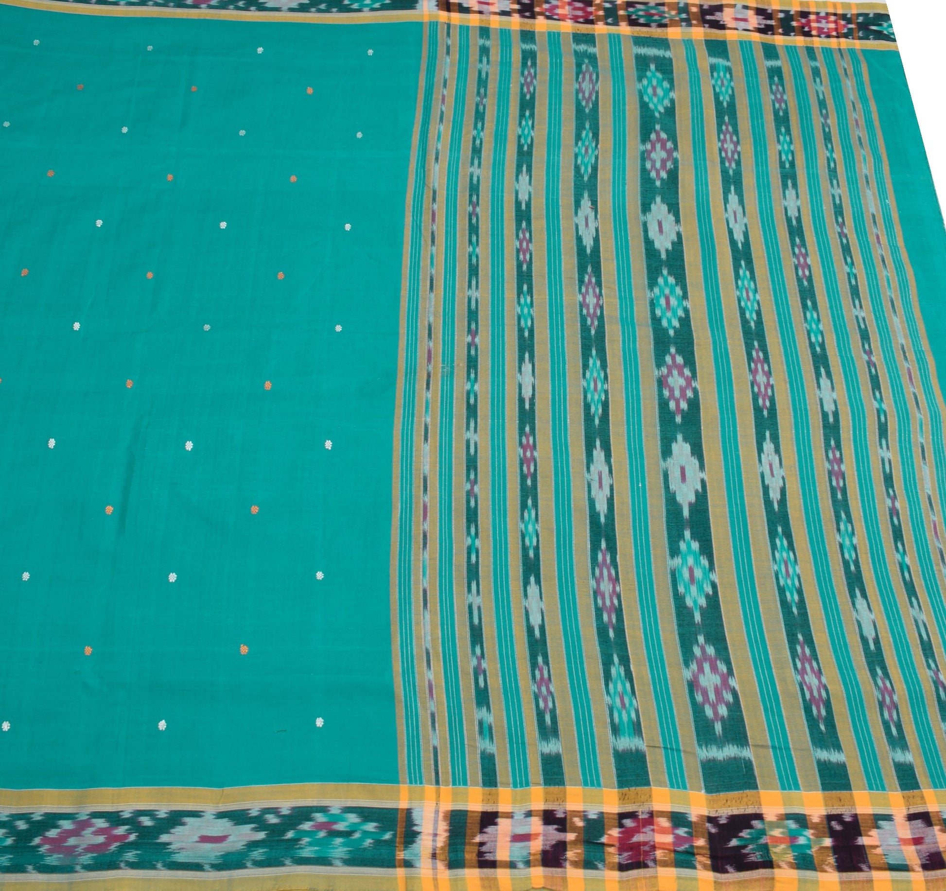 Sushila Vintage Teal Saree Pure Cotton Hand Woven Sambalpuri Ikat Sari Fabric