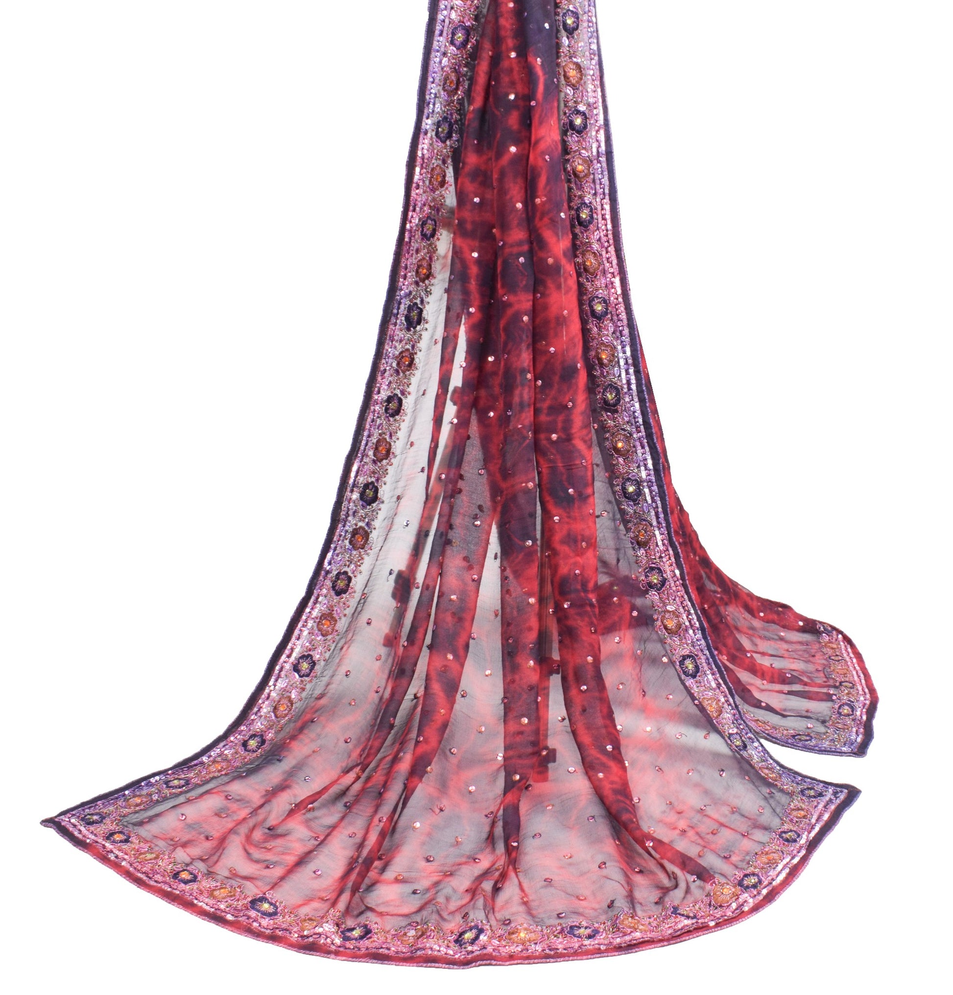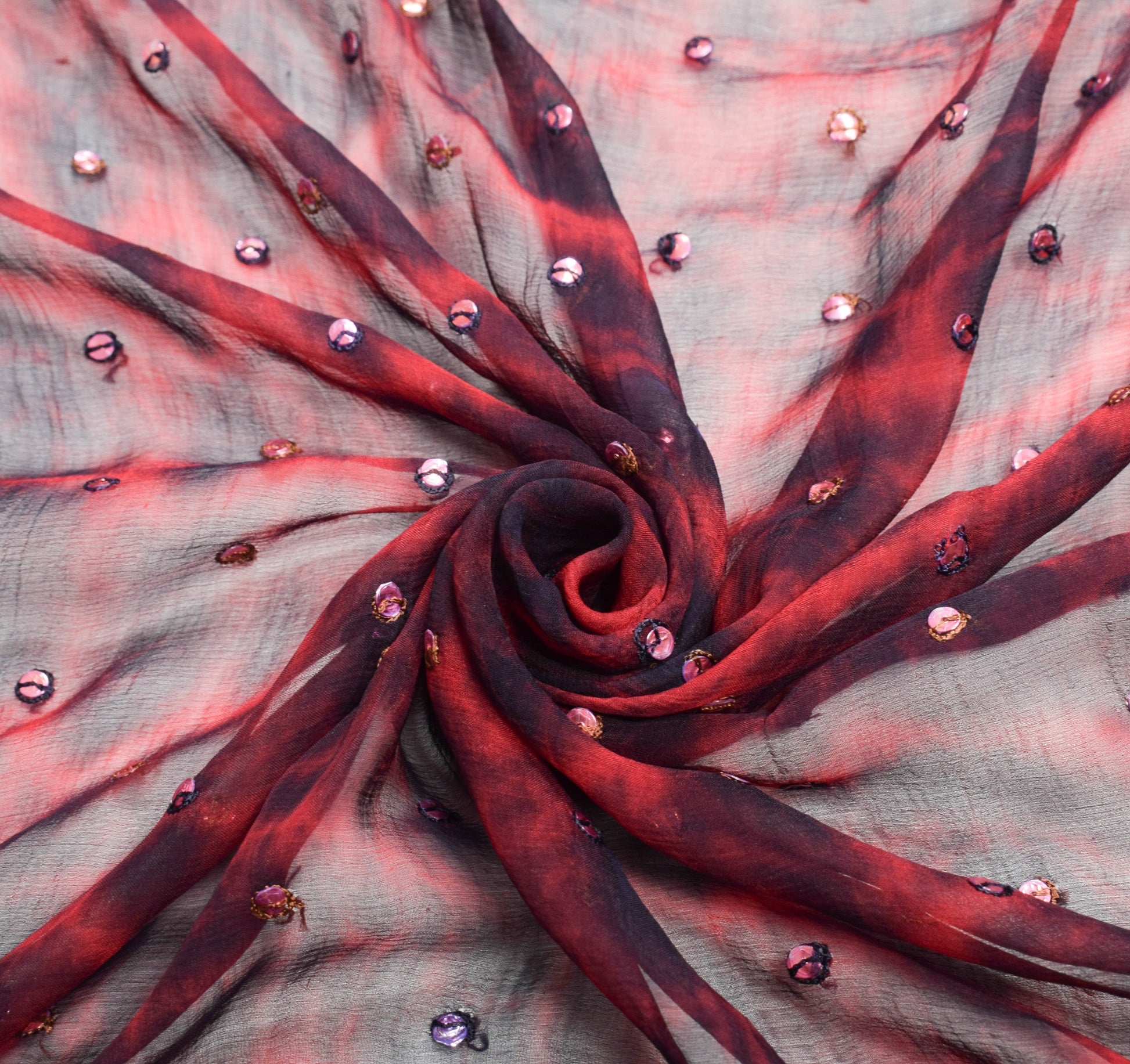 Sushila Vintage Tie-Dye Red Black Dupatta Pure Chiffon Silk Hand Work Long Stole