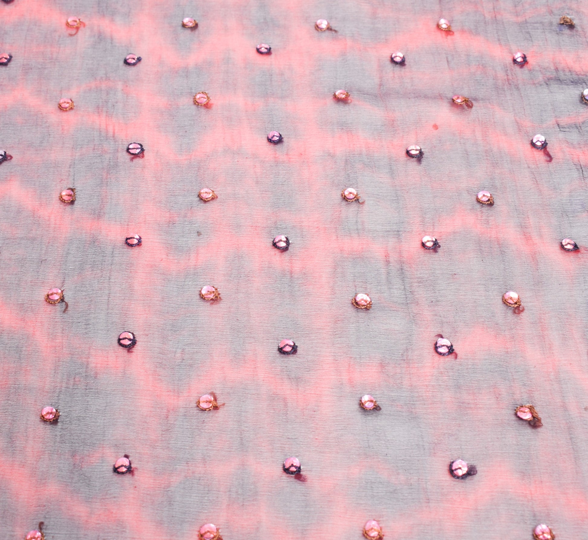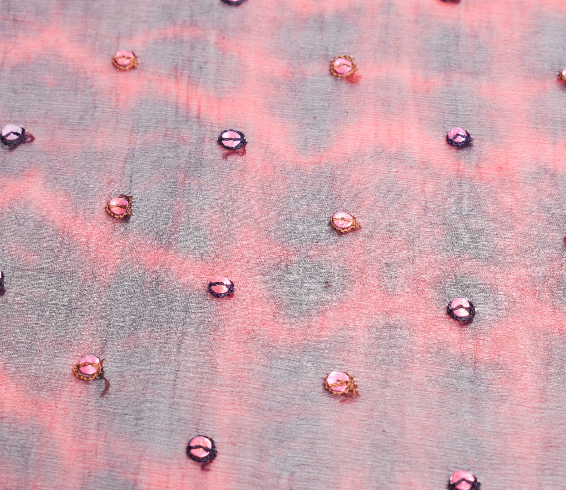 This eye-catching piece features intricate hand beaded work, shimmering sequins, glass beads, rhinestones, and delicate embroidery, all brought together with a striking tie-dye effect for a dramatic, artistic finish.