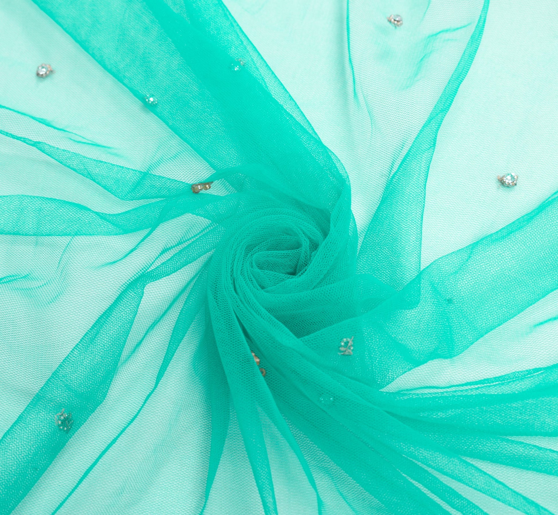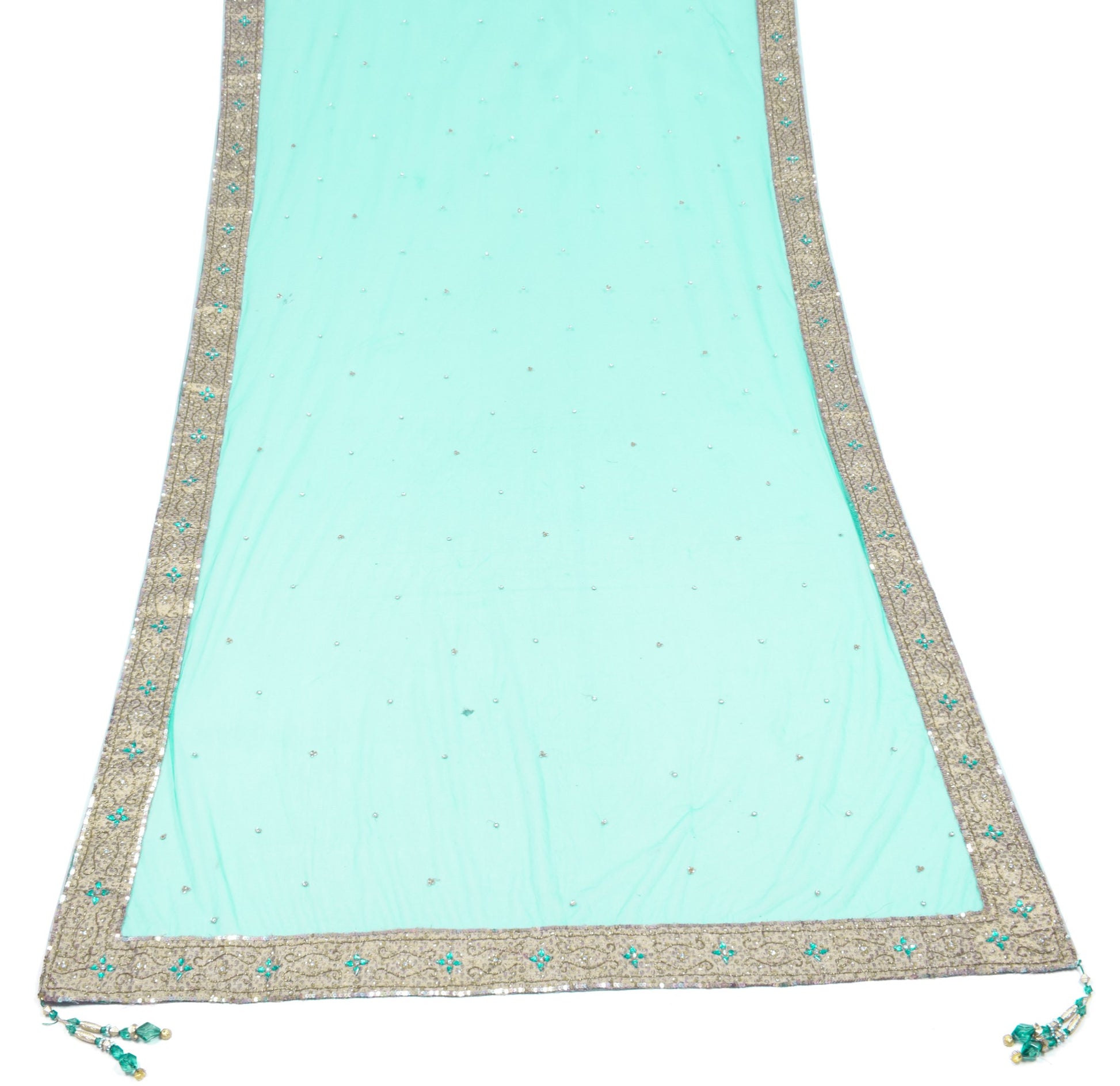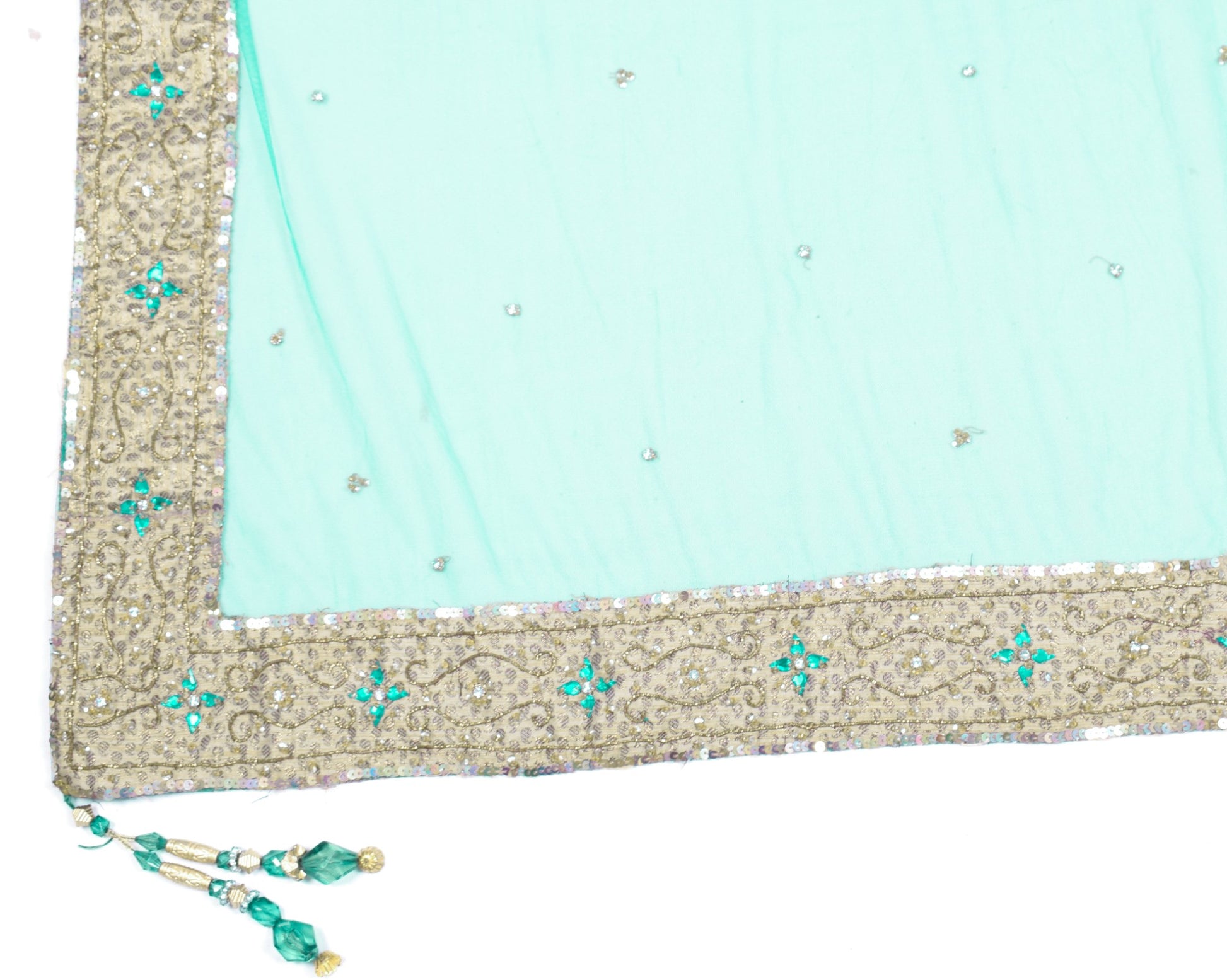 Sushila Vintage Turq. Green Plain Dupatta with Hand Beaded Border Net Long Stole