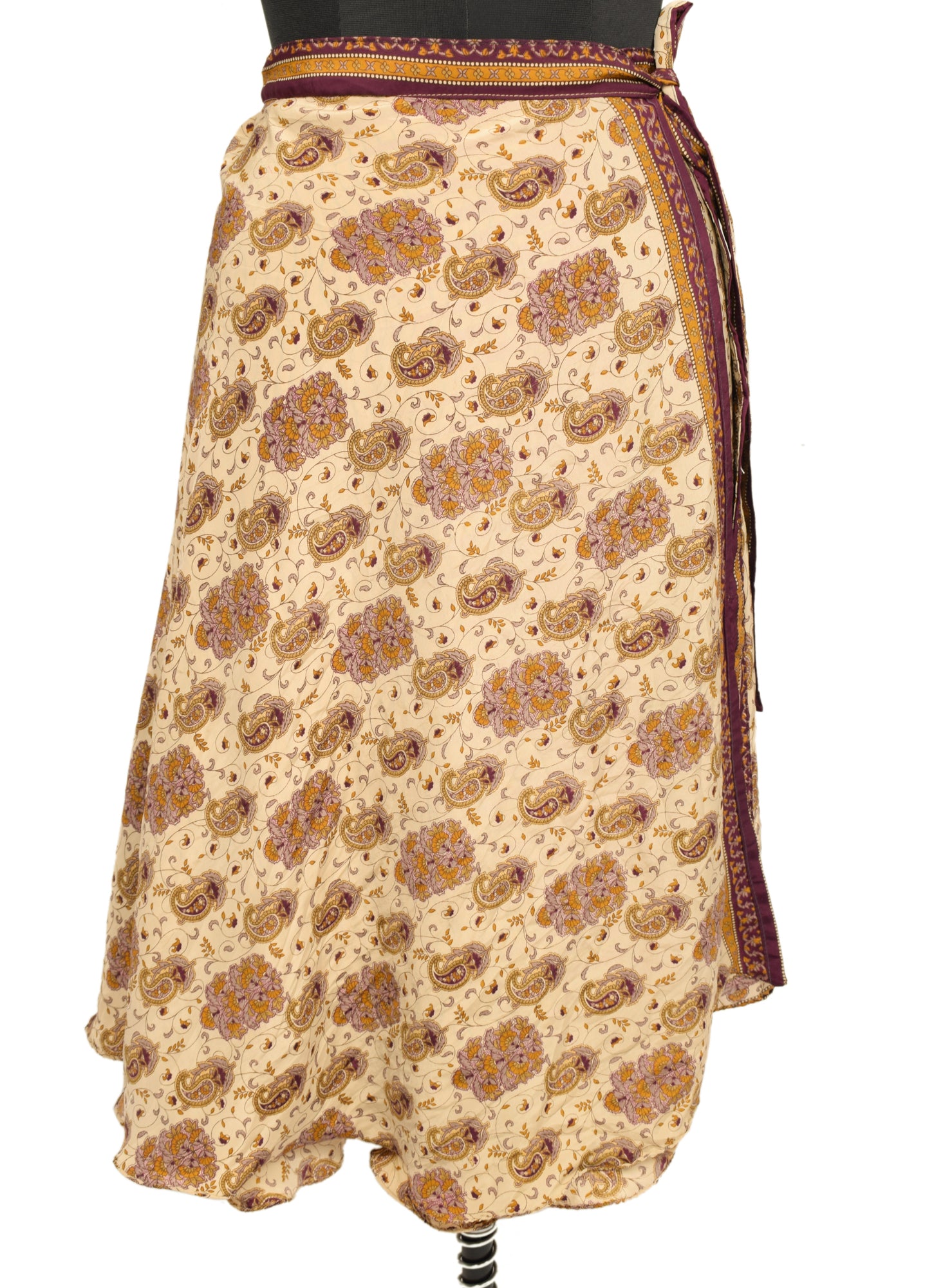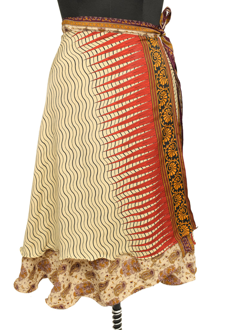 Sushila Vintage Vintage Sari Magic wrap Skirt Bohemian Double Layer Cream