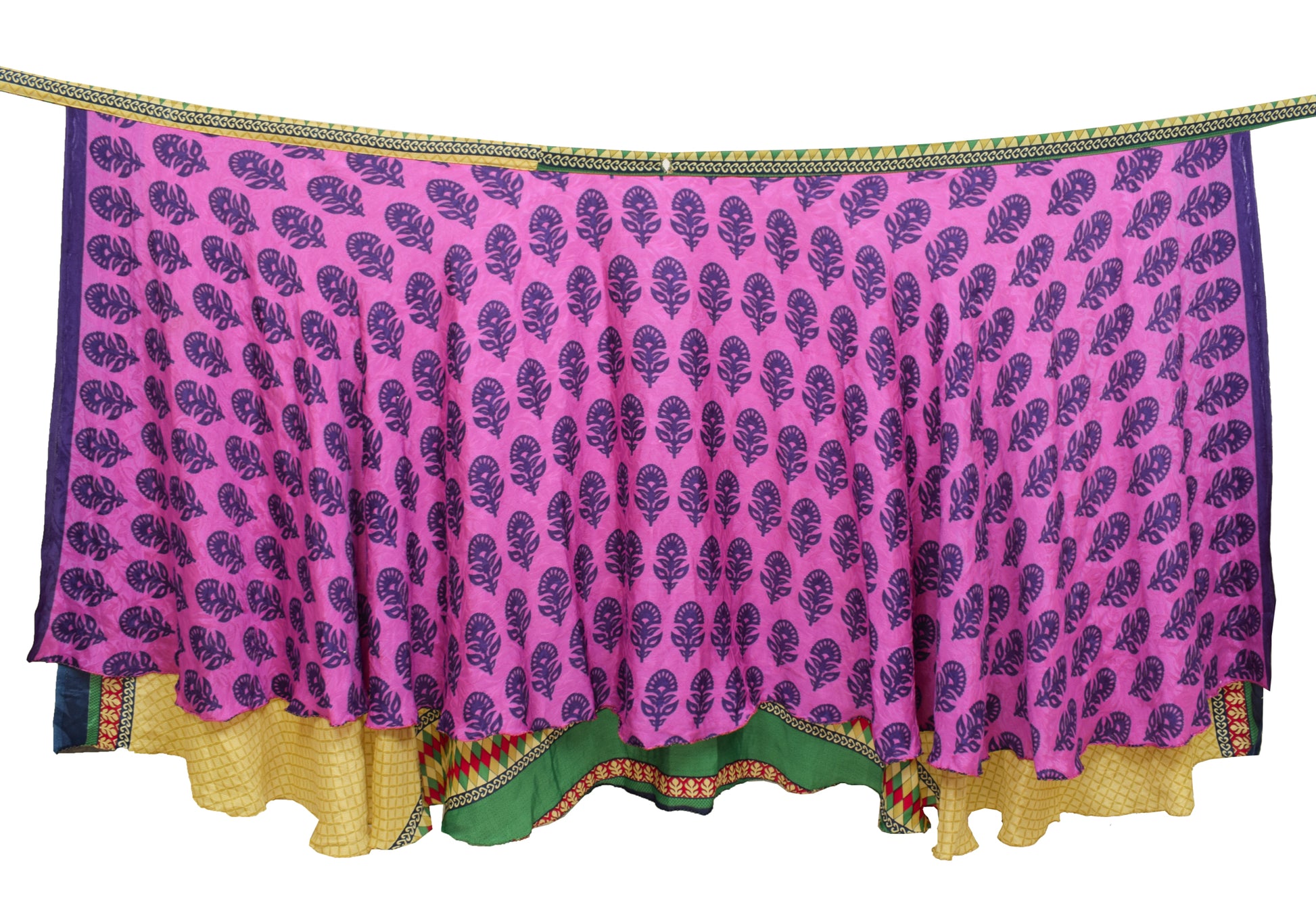 Sushila Vintage Vintage Sari Magic wrap Skirt Bohemian Double Layer Fuchsia