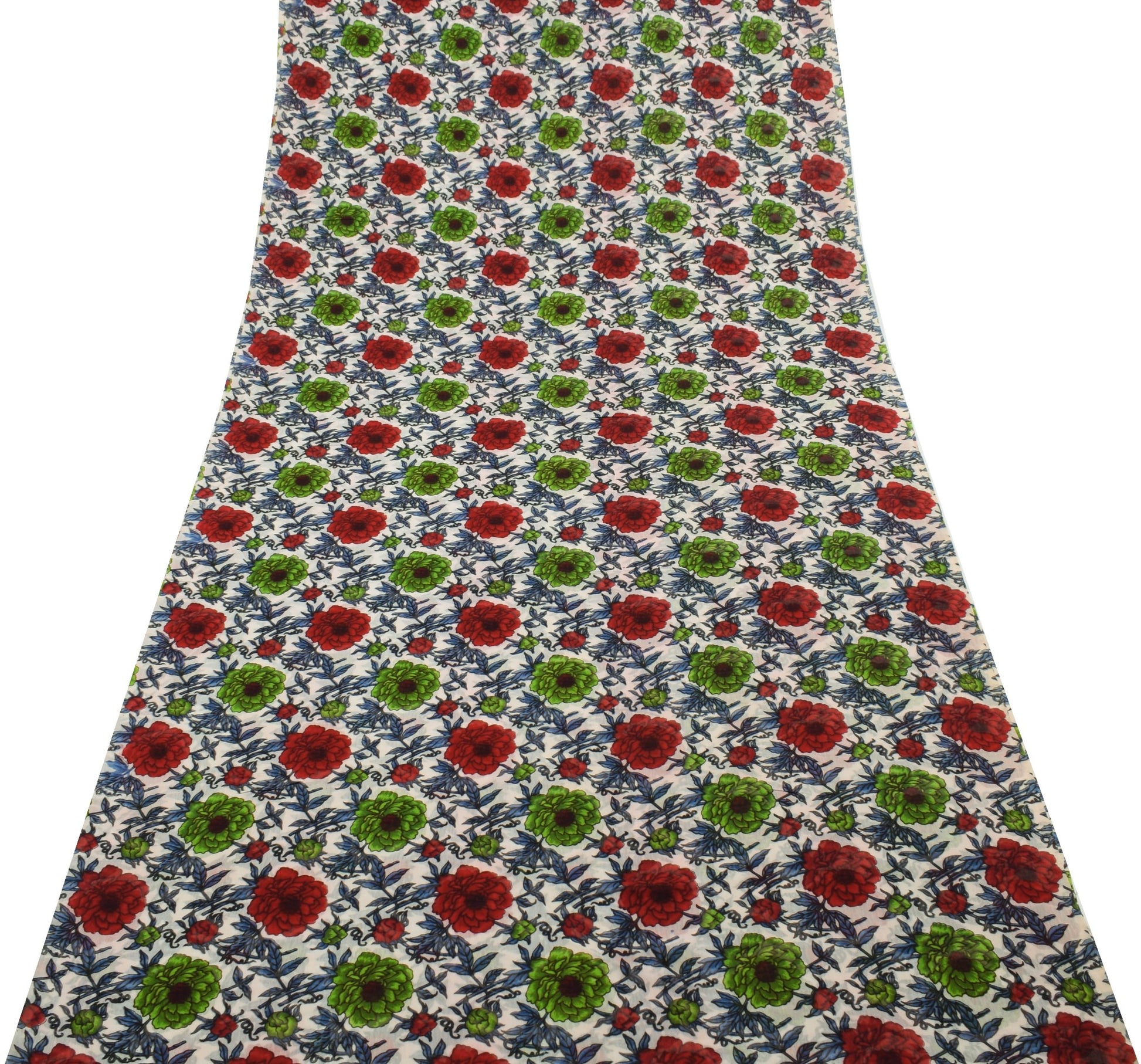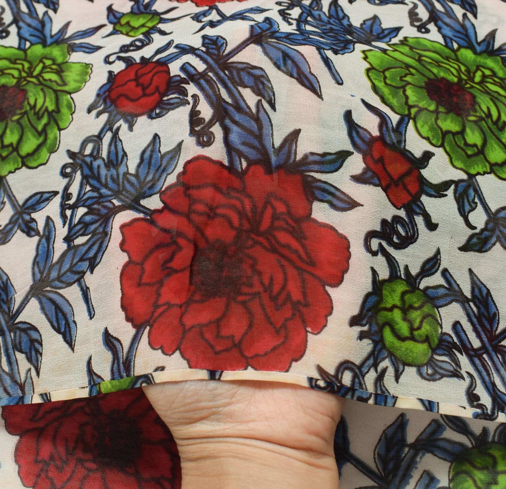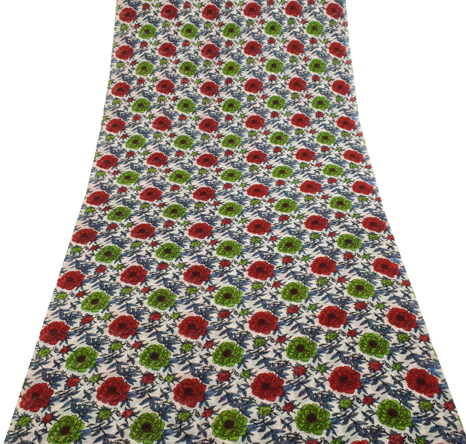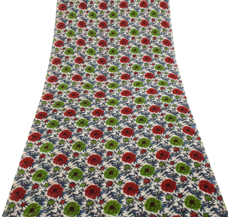 Sushila Vintage White Floral Saree 100% Pure Georgette Silk Printed Craft Fabric