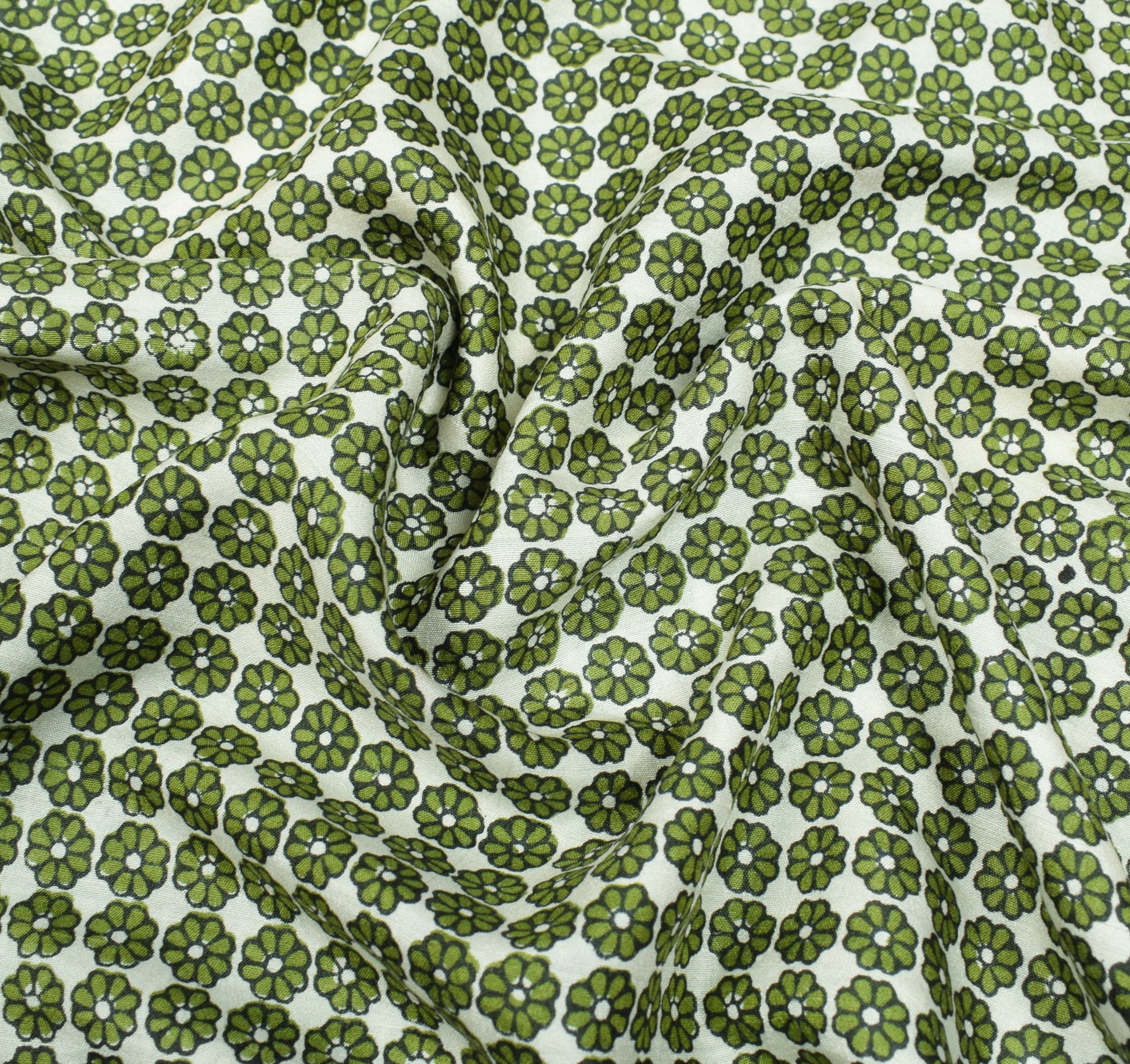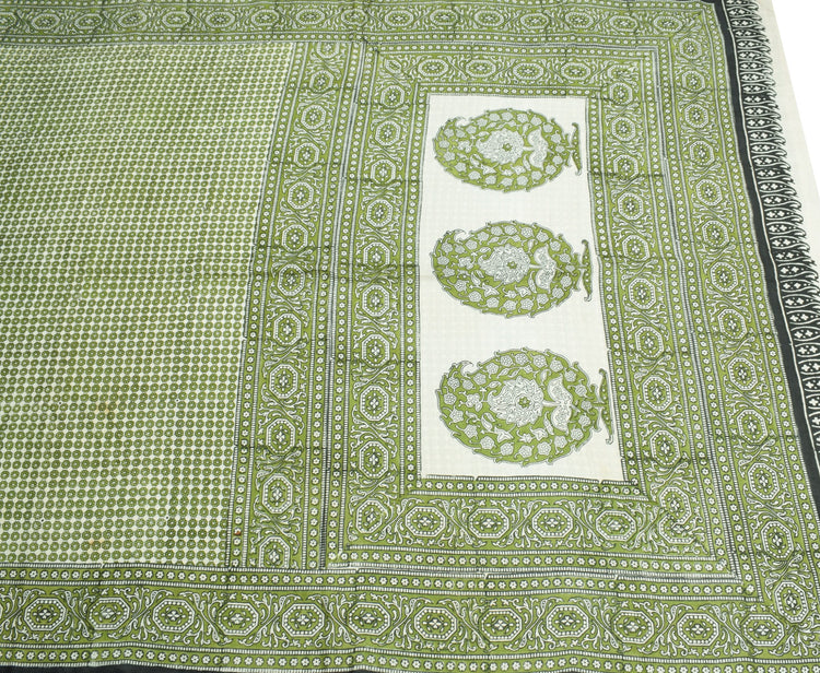 Sushila Vintage White Green Saree Pure Silk Hand Block Printed Soft Craft Fabric