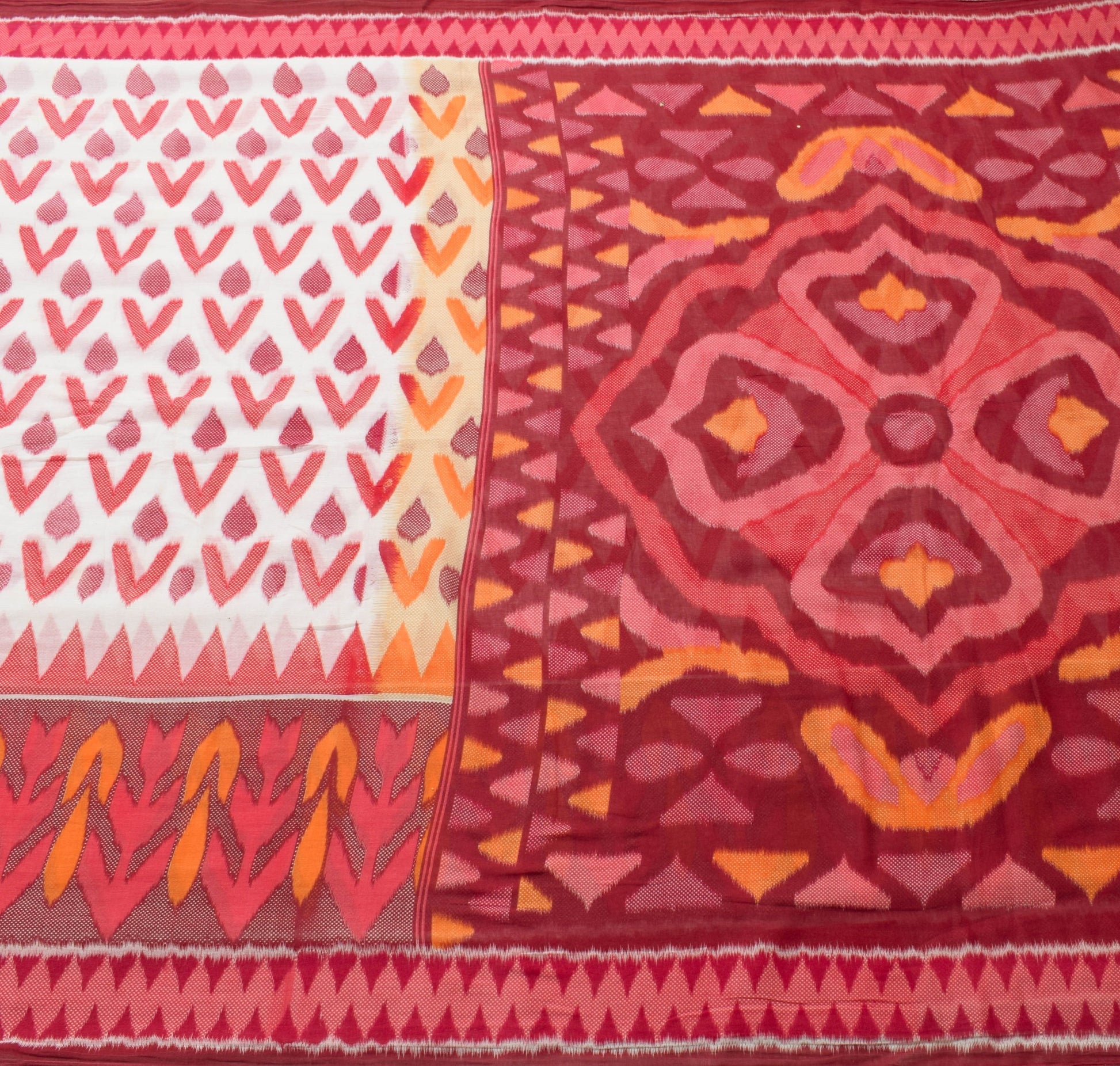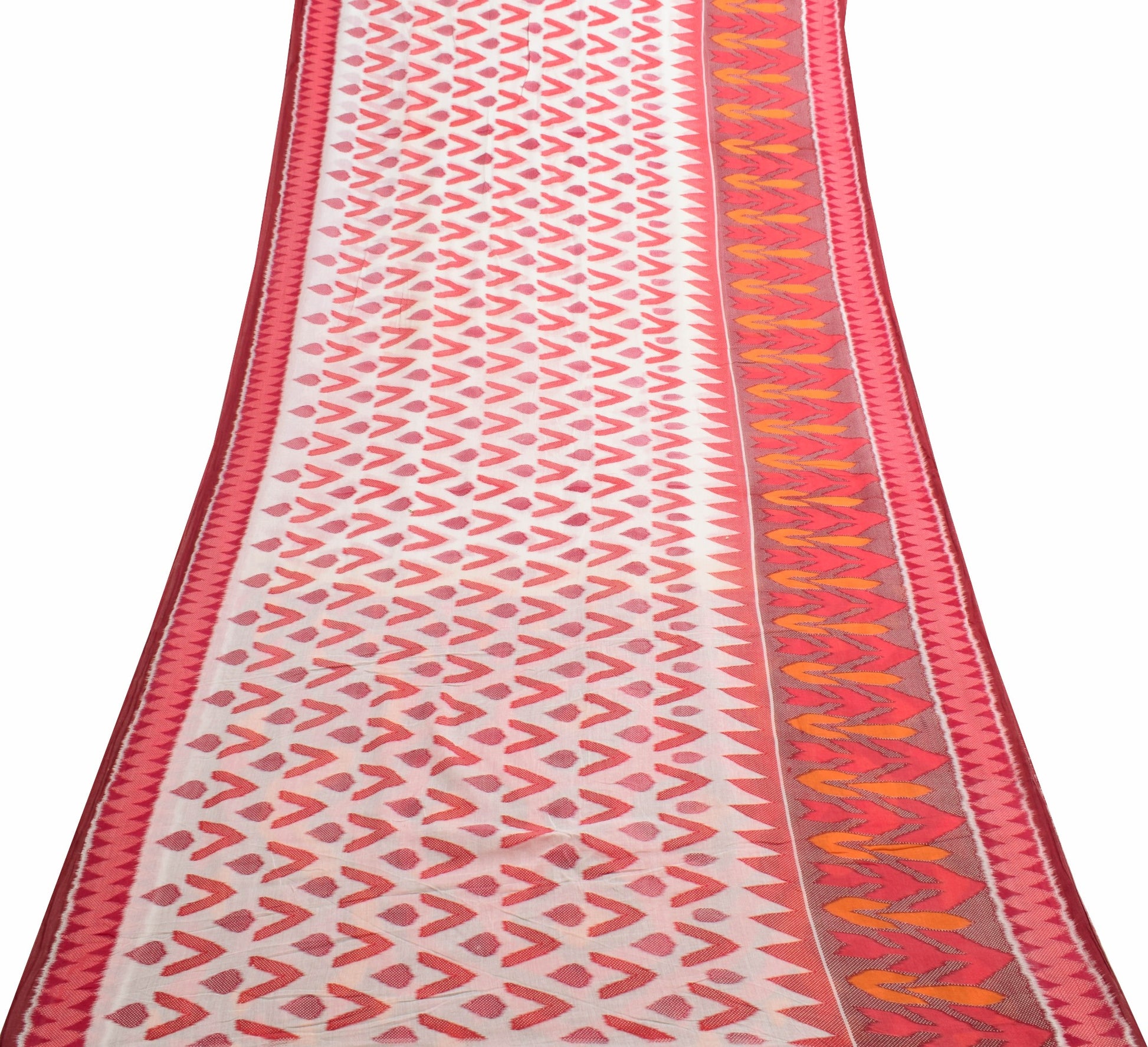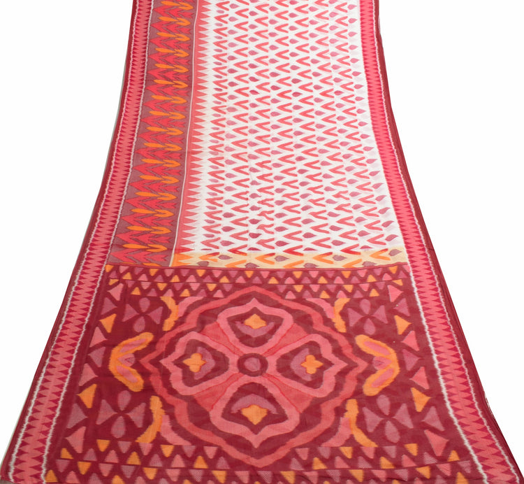 Sushila Vintage White Indian Saree 100% Pure Cotton Printed Soft Craft Fabric