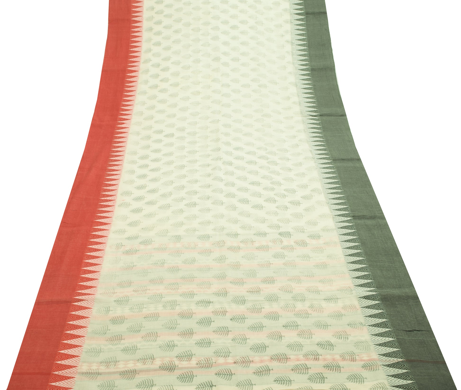 Sushila Vintage White Saree 100% Pure Cotton Floral Woven & Printed Craft Fabric