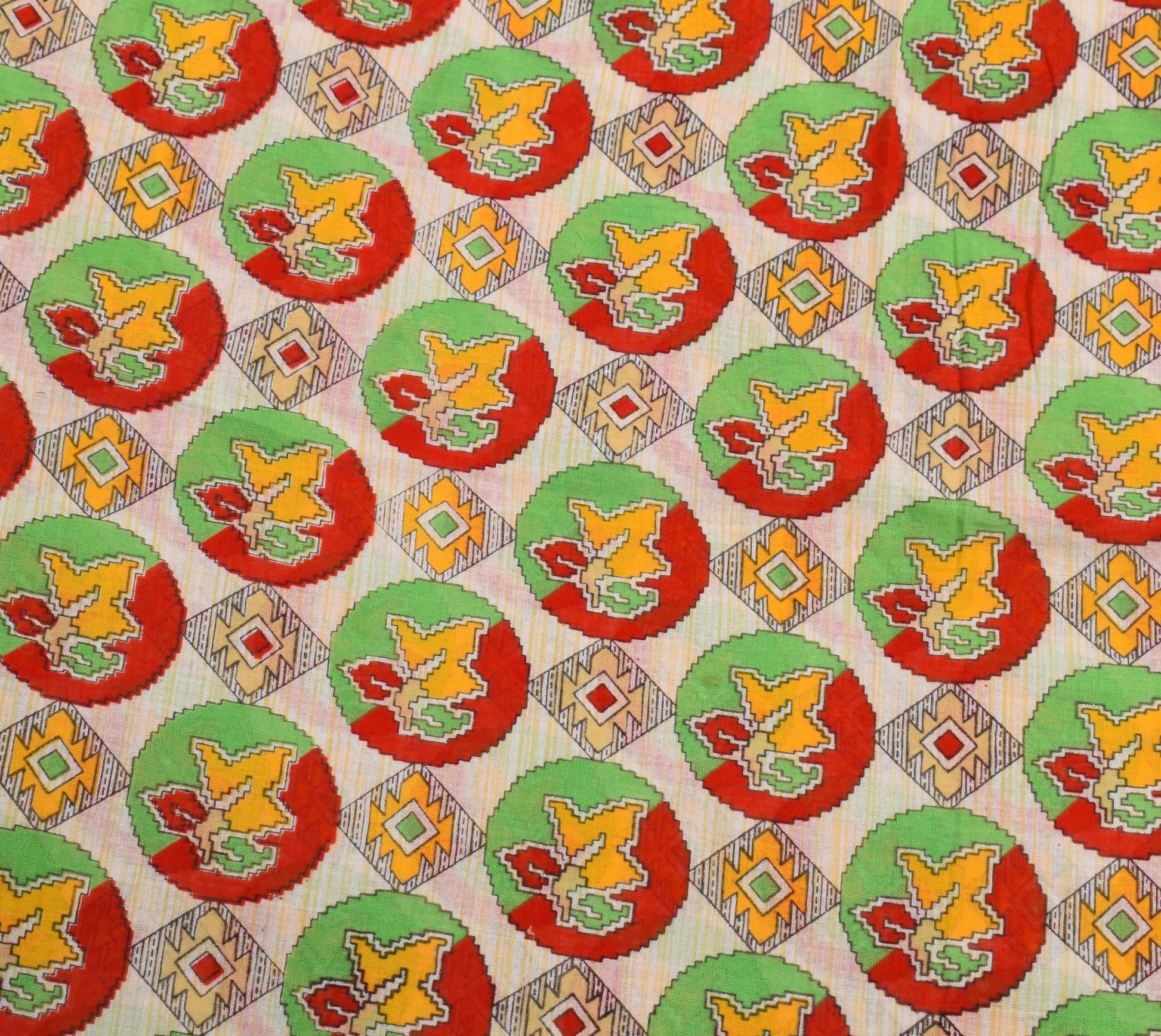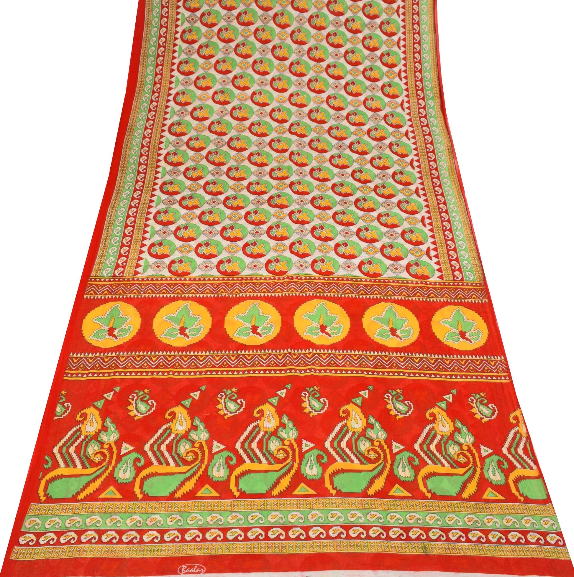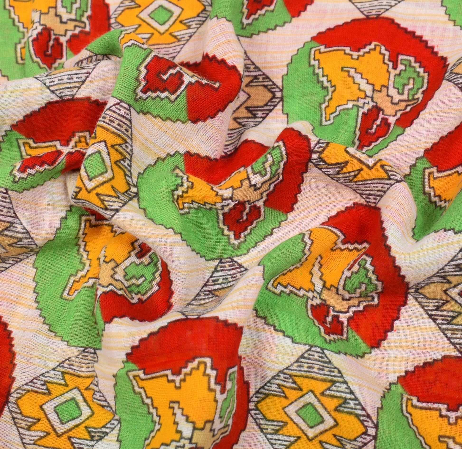 Sushila Vintage White Saree 100% Pure Cotton Printed Geometric Soft Craft Fabric