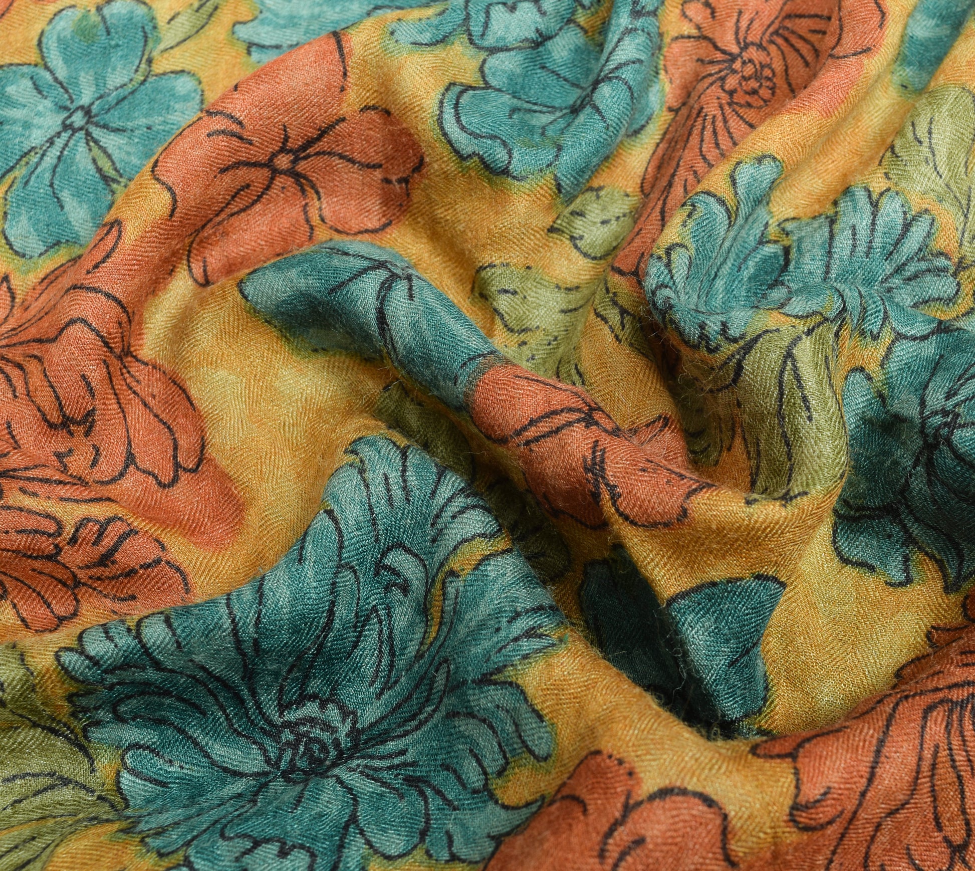 Sushila Vintage Yellow 100% Pure Woolen Saree Floral Woven & Printed Sari Fabric