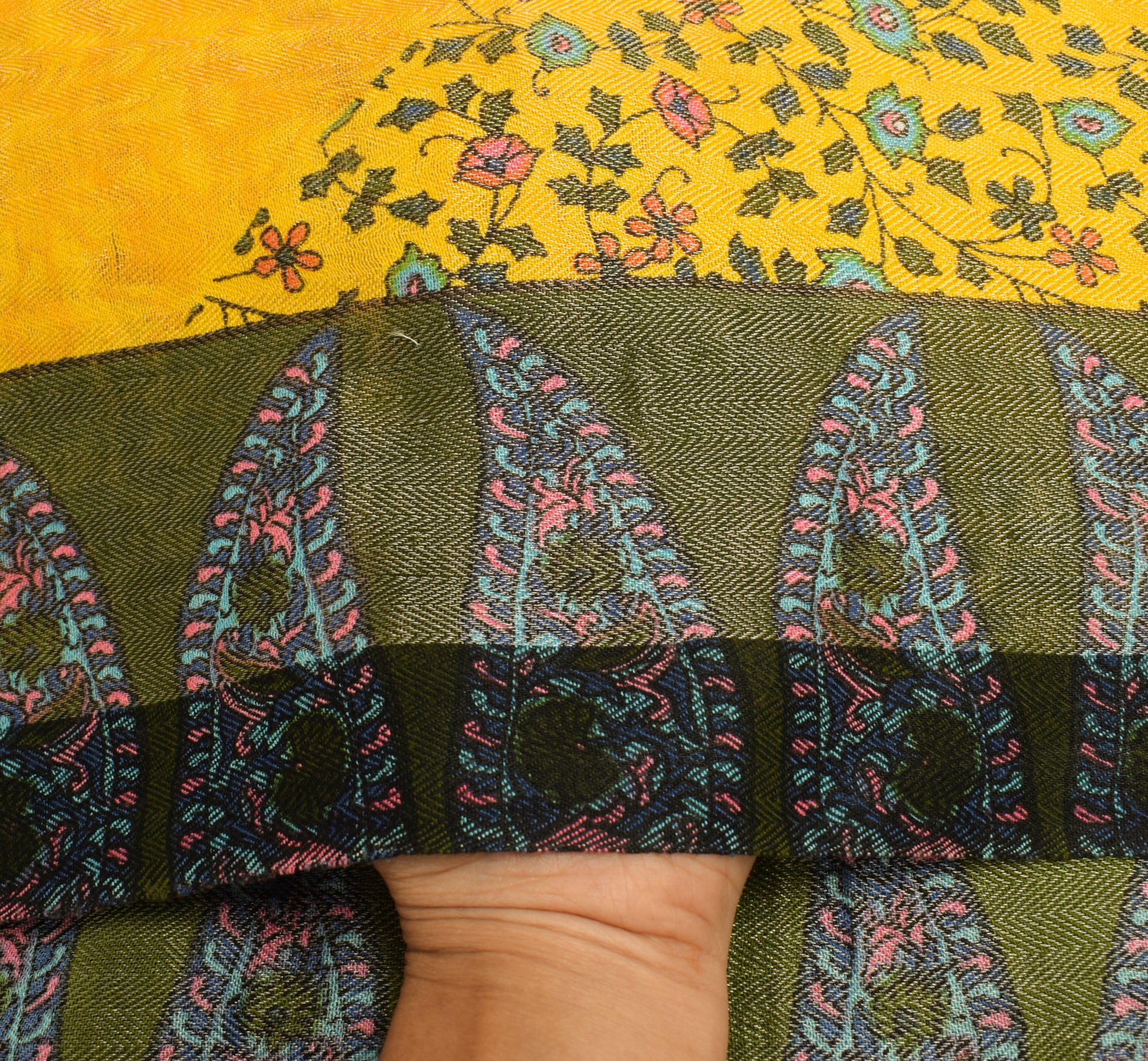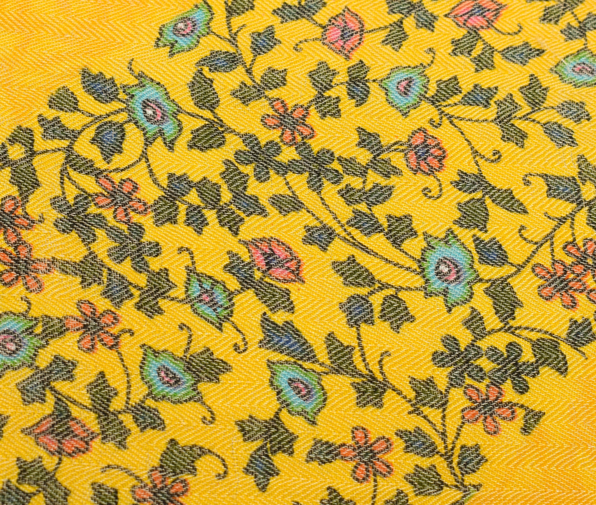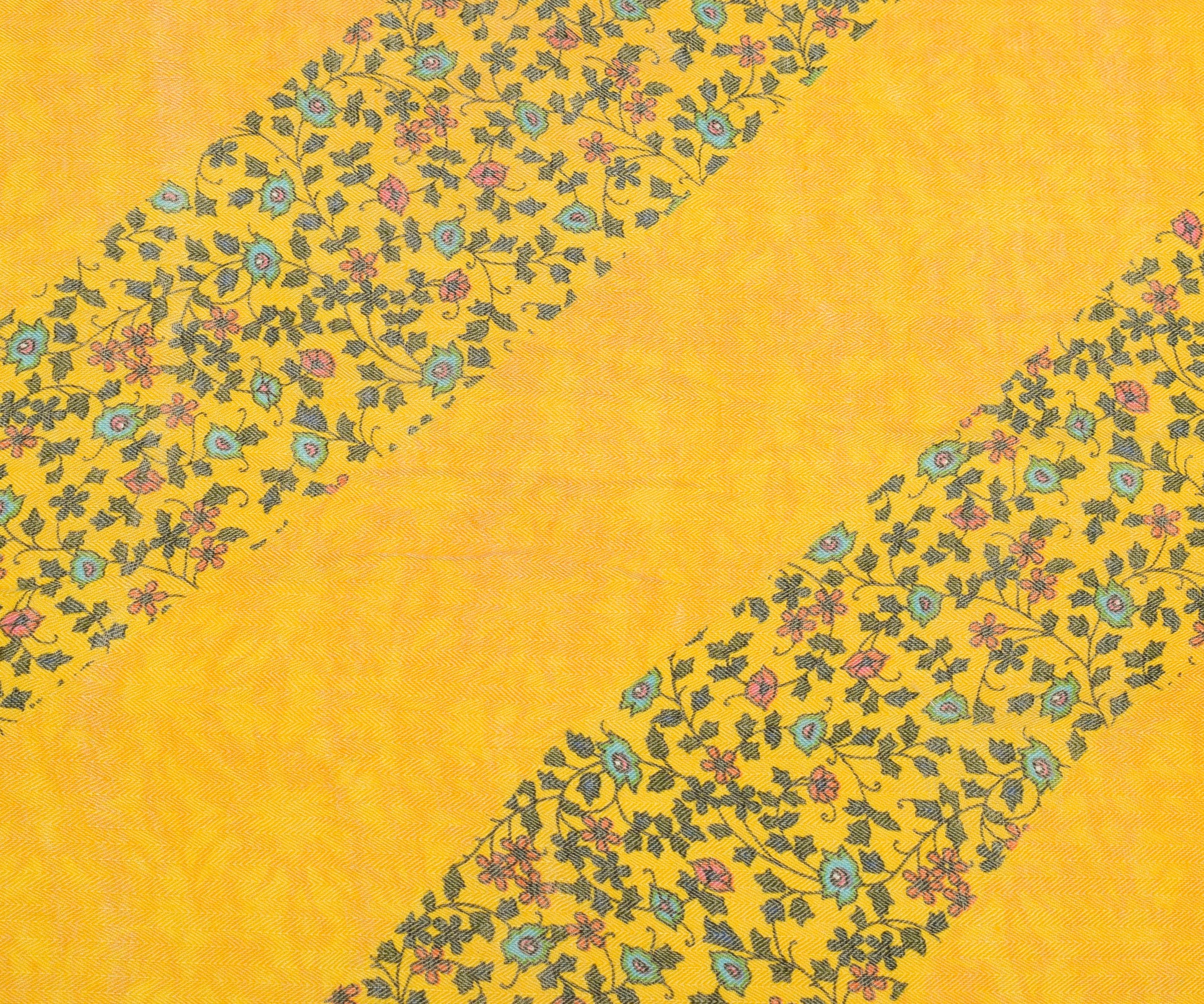 Sushila Vintage Yellow Dupatta Blend Woolen Woven Floral Long Stole Scarves Wrap