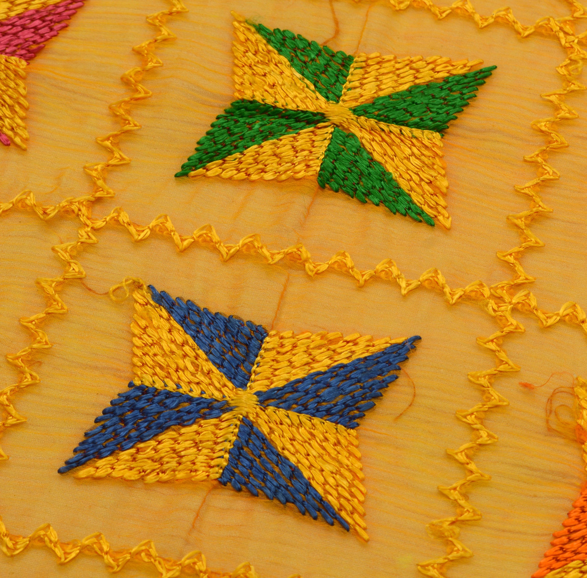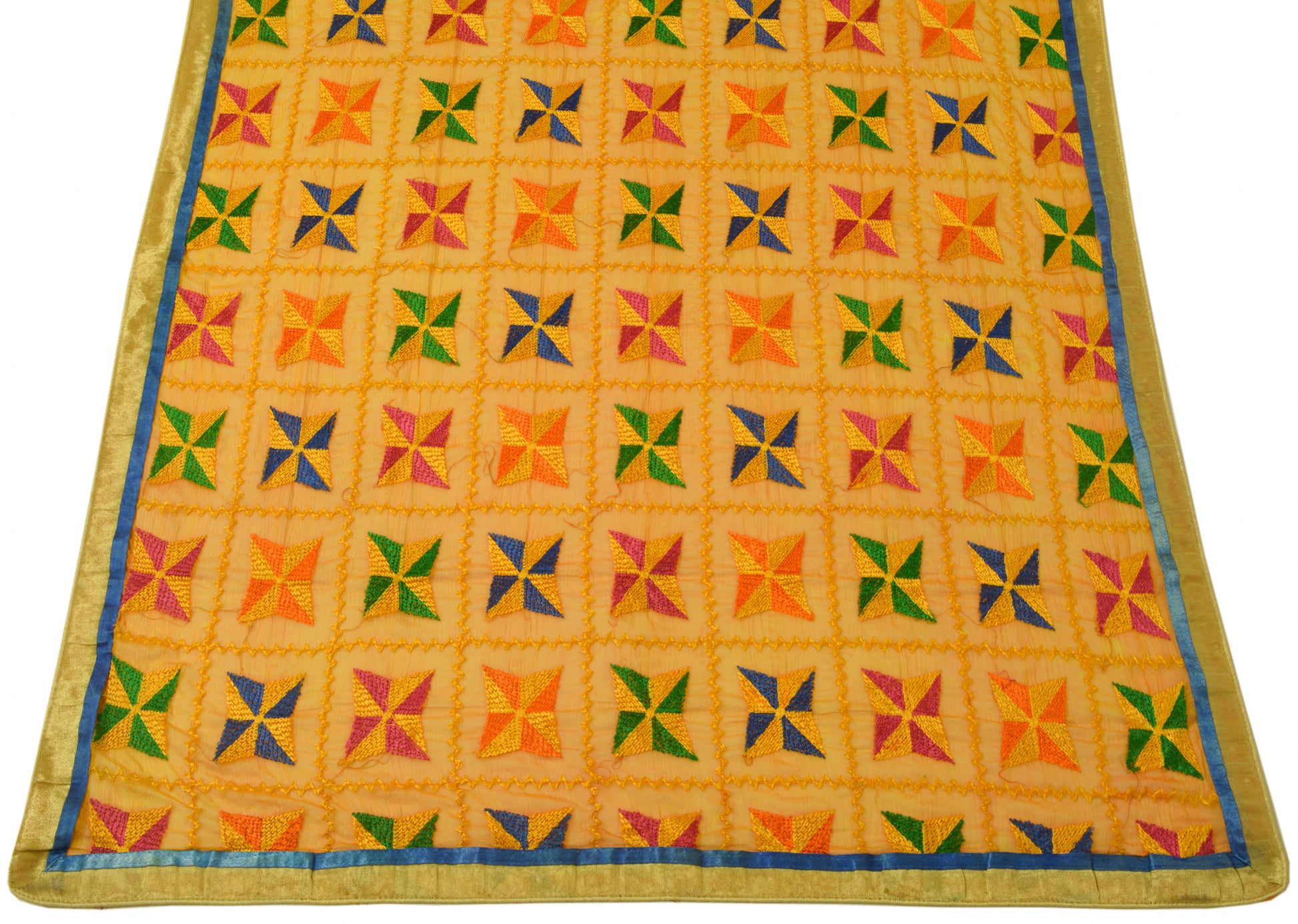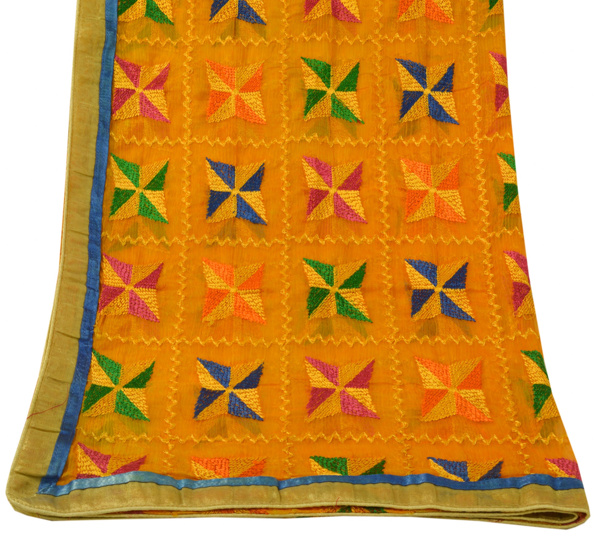 Sushila Vintage Yellow Dupatta Chiffon Embroidered Phulkaari Long Stole Scarves