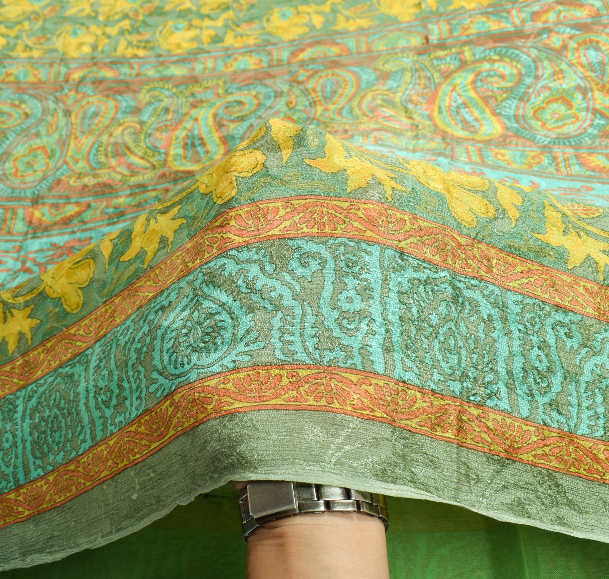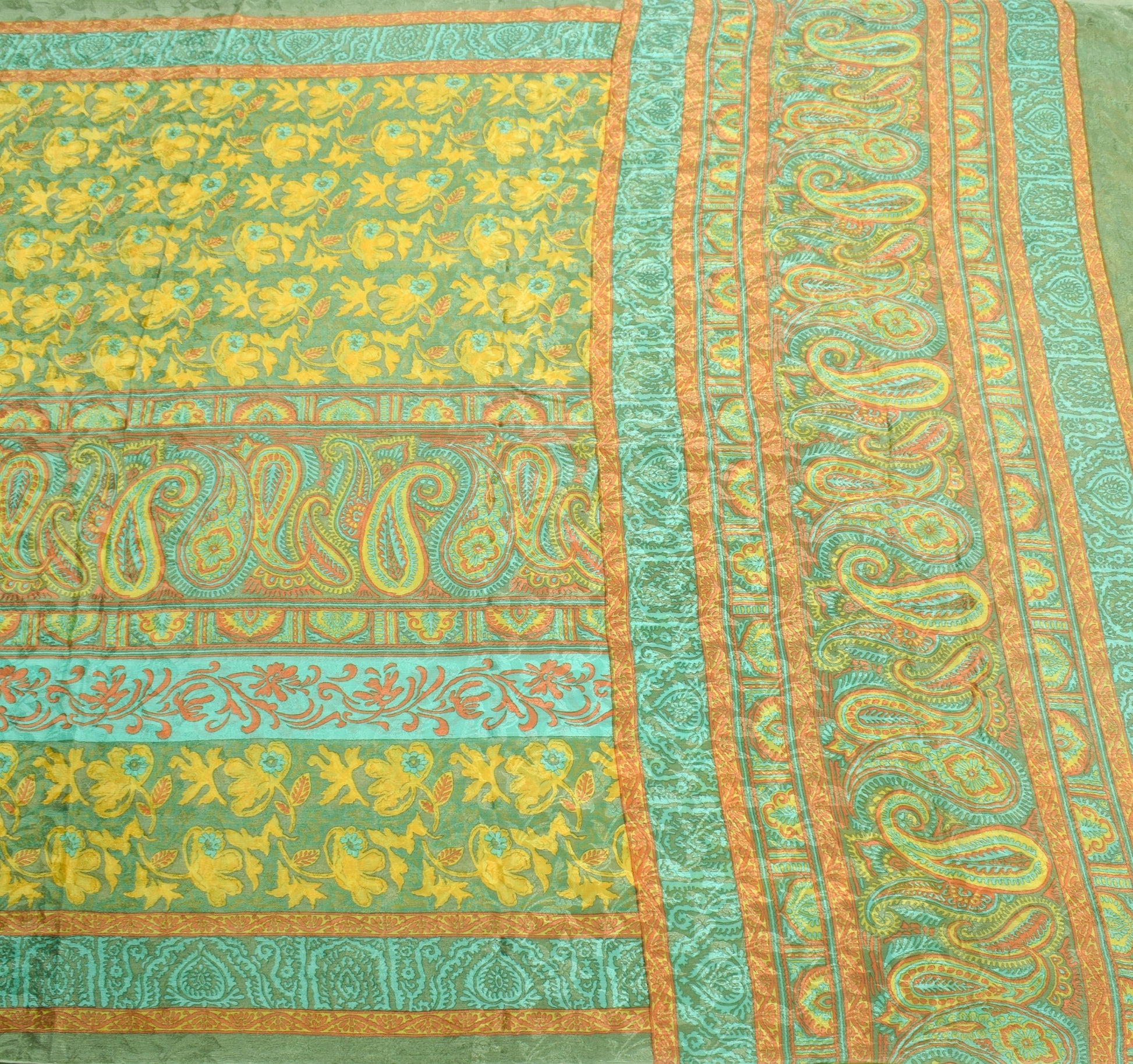 Sushila Vintage Yellow Green Saree Pure Chiffon Silk Printed Soft Craft Fabric