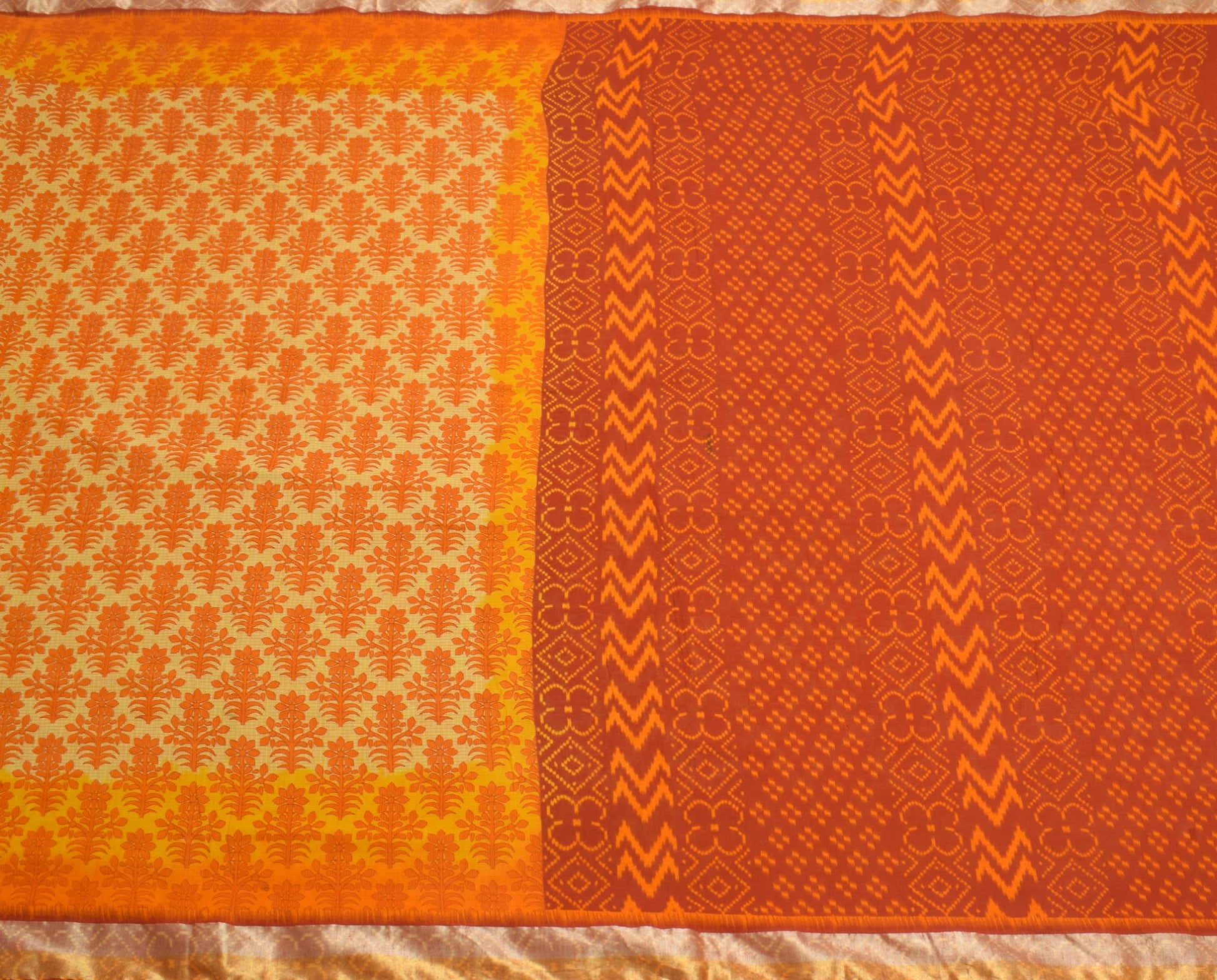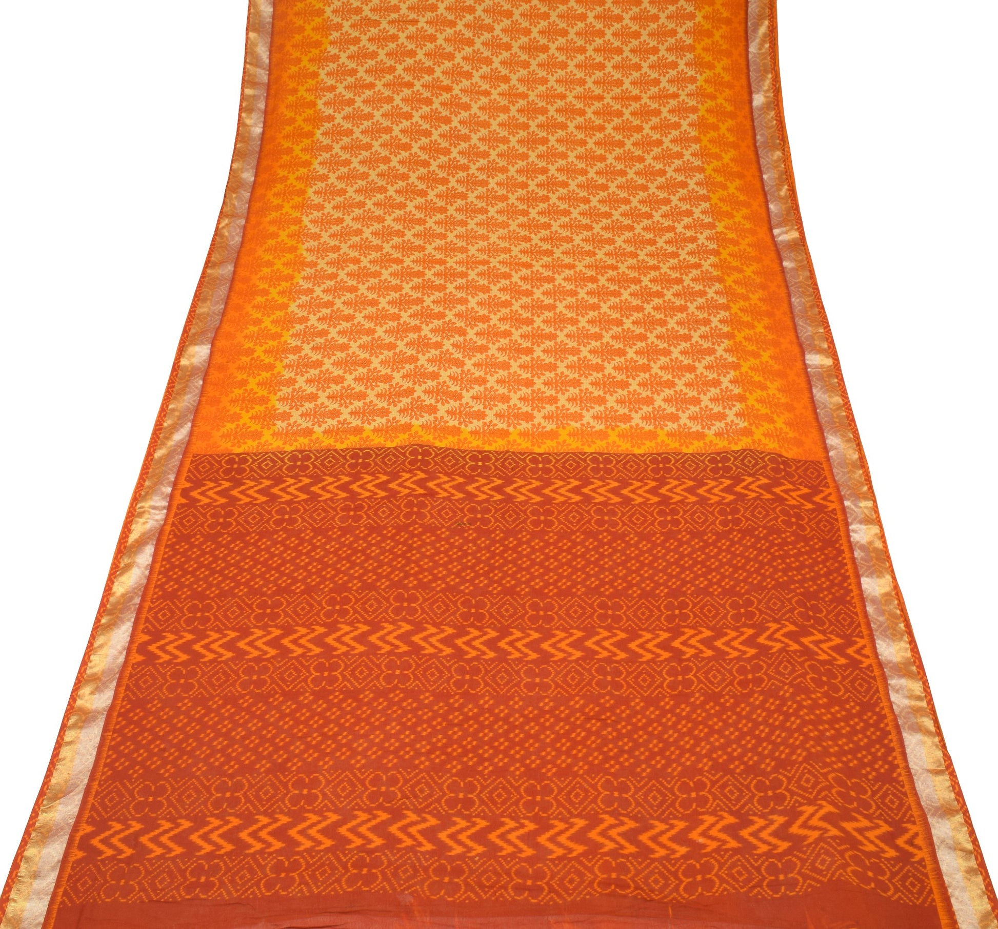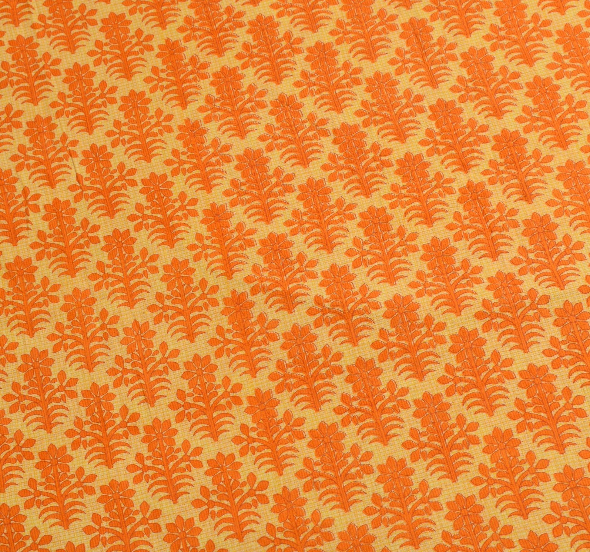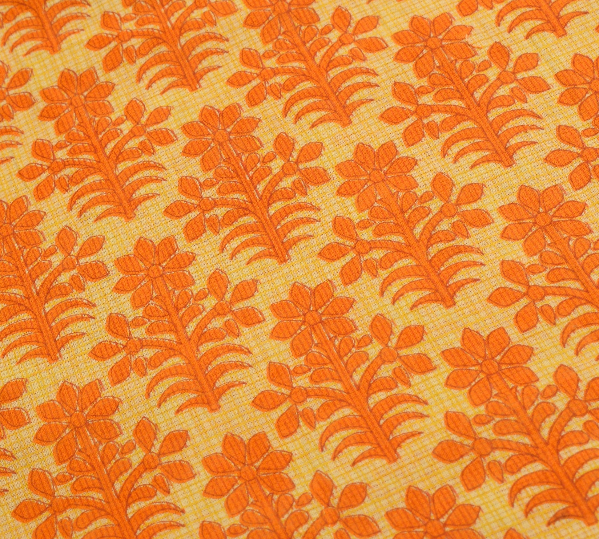 Sushila Vintage Yellow Orange Saree Pure Cotton Printed Soft Floral Craft Fabric