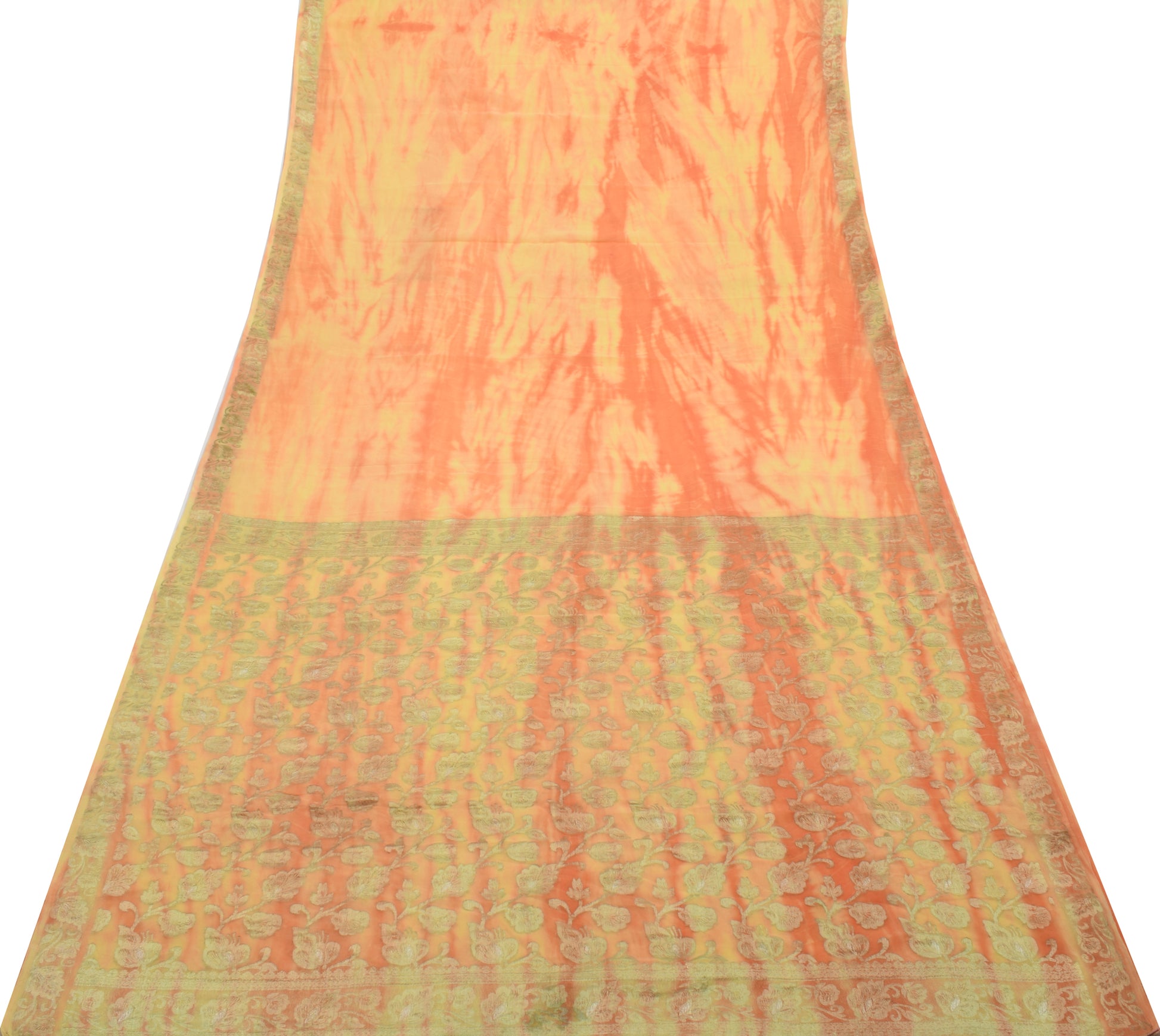 Sushila Vintage Yellow & Orange Saree Pure Georgette Silk Printed Craft Fabric
