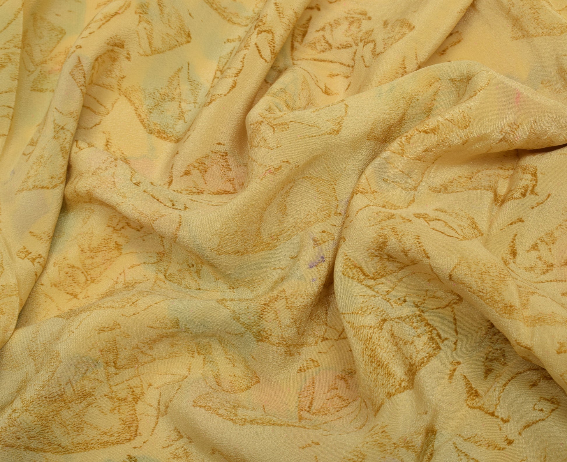 Capture vintage allure with this yellow 100% pure crepe silk saree, beautifully crafted with floral designs and intricate printed accents. Crafted from pure, breathable 100% pure crepe silk, this sarI boasts a luxurious drape and enduring appeal. Measuring roughly 208 inch in length and 43 inch in width, it offers versatile styling—whether worn traditionally or repurposed into bespoke dresses, home décor, or creative crafts. Weighing about 355 grams (actual product weight), it falls gracefully, making it ideal for anyone who appreciates the charm of vintage textiles.