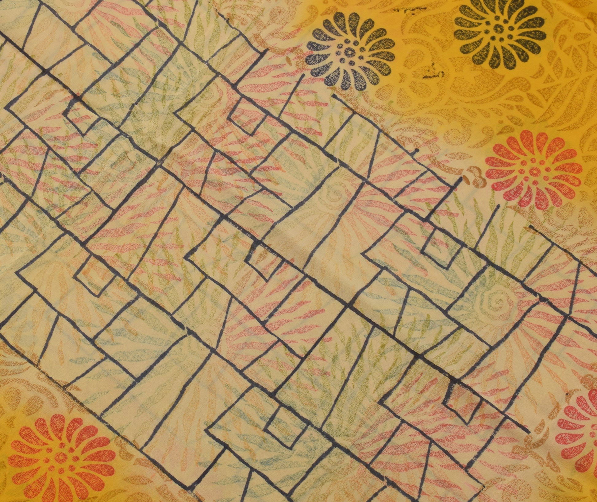Sushila Vintage Yellow Saree 100% Pure Crepe Silk Printed Floral Soft Fabric