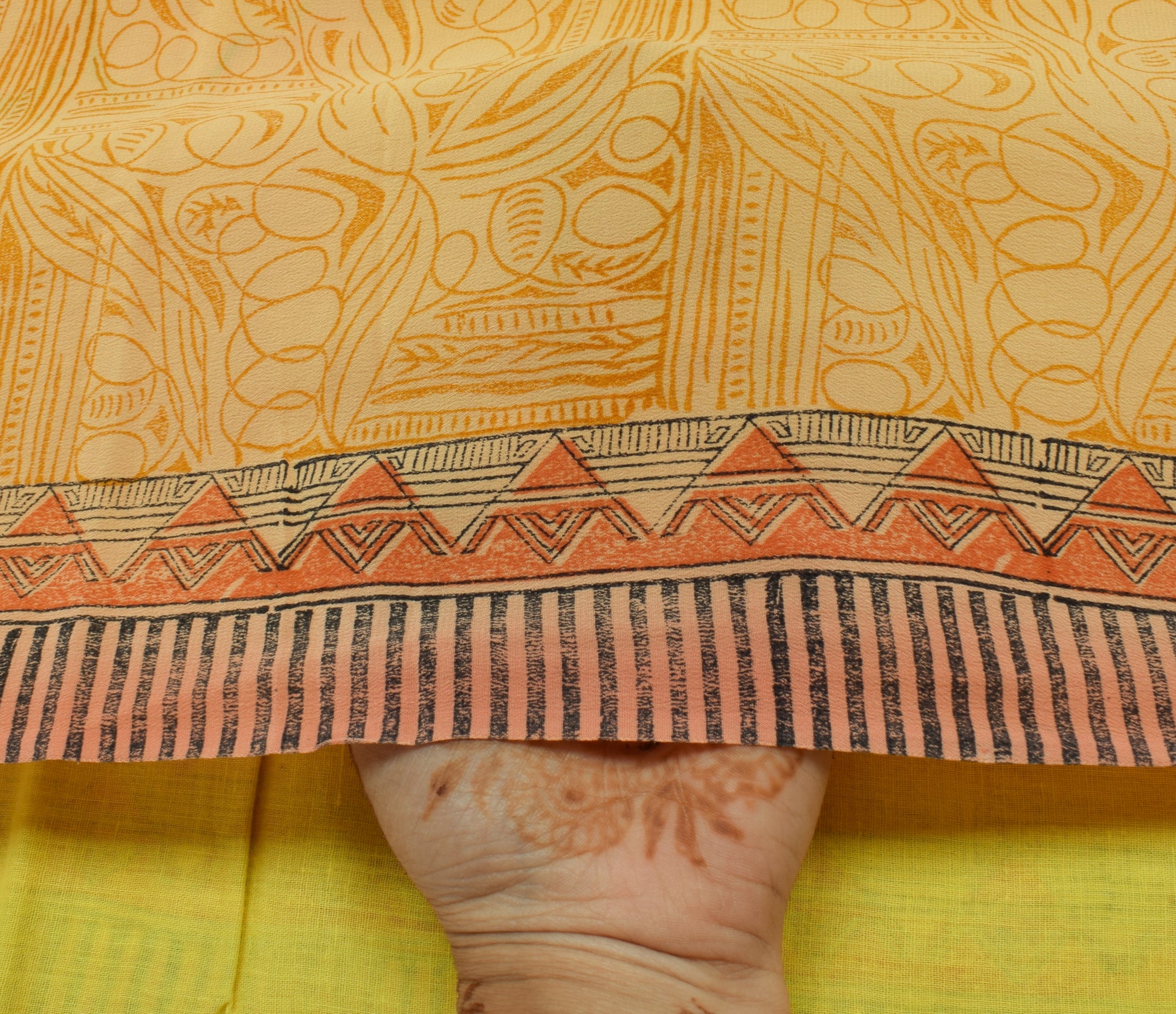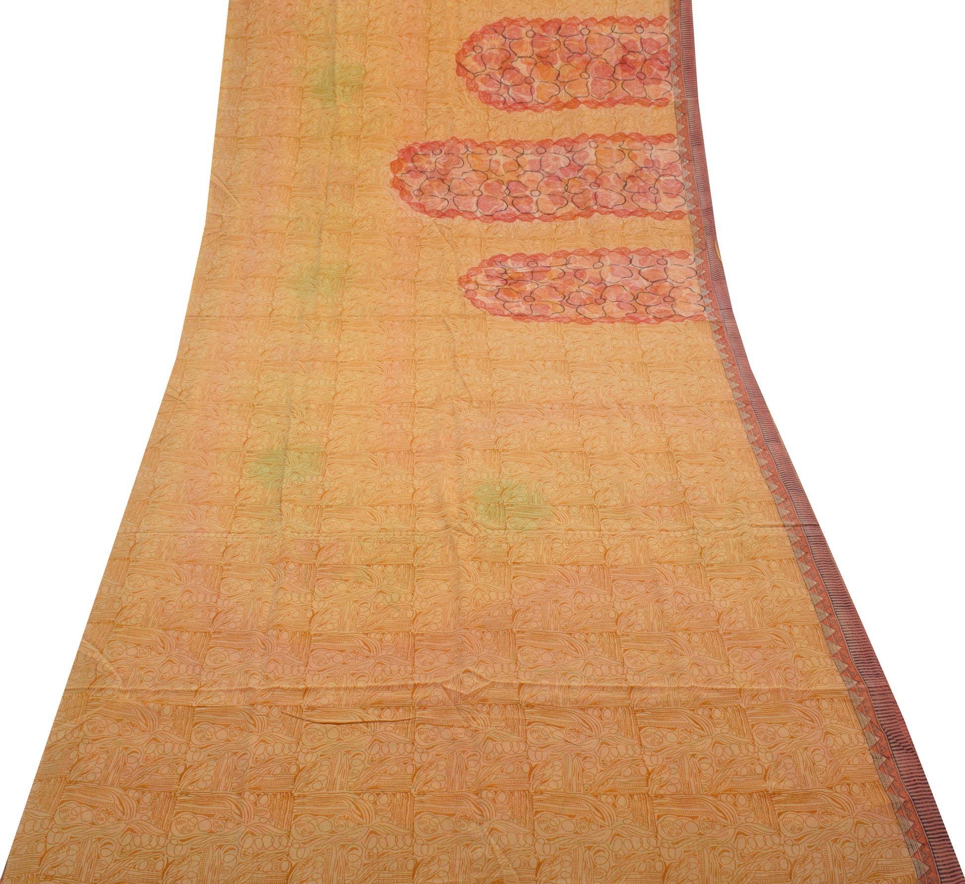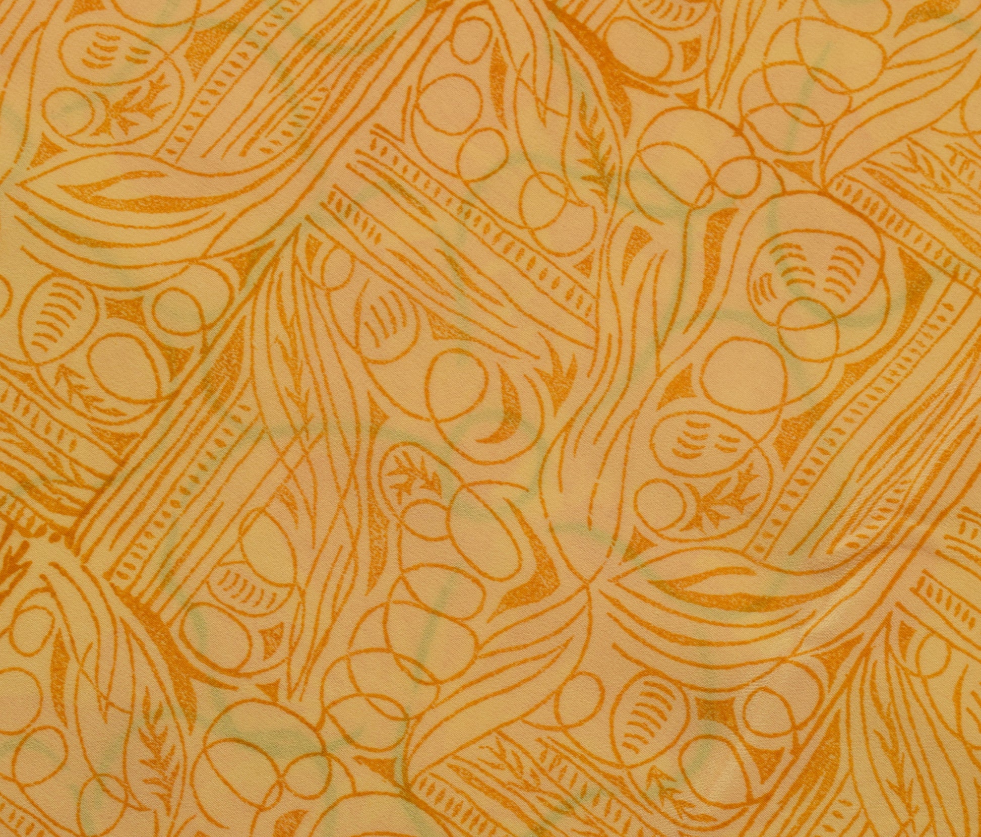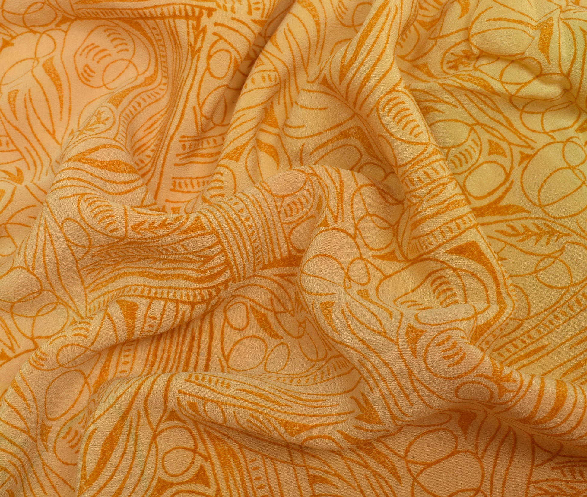 Sushila Vintage Yellow Saree 100% Pure Crepe Silk Printed Soft Craft Fabric
