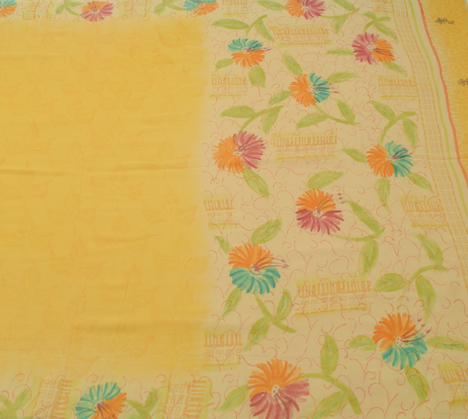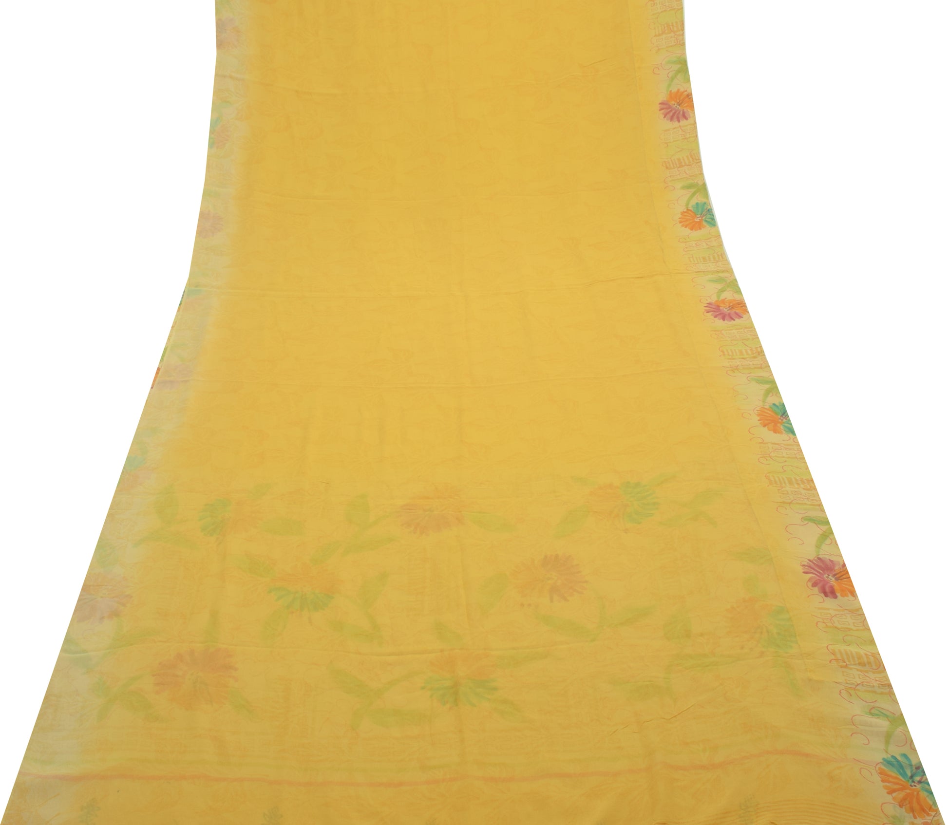 Sushila Vintage Yellow Saree 100%Pure Georgette Silk Printed Floral Craft Fabric