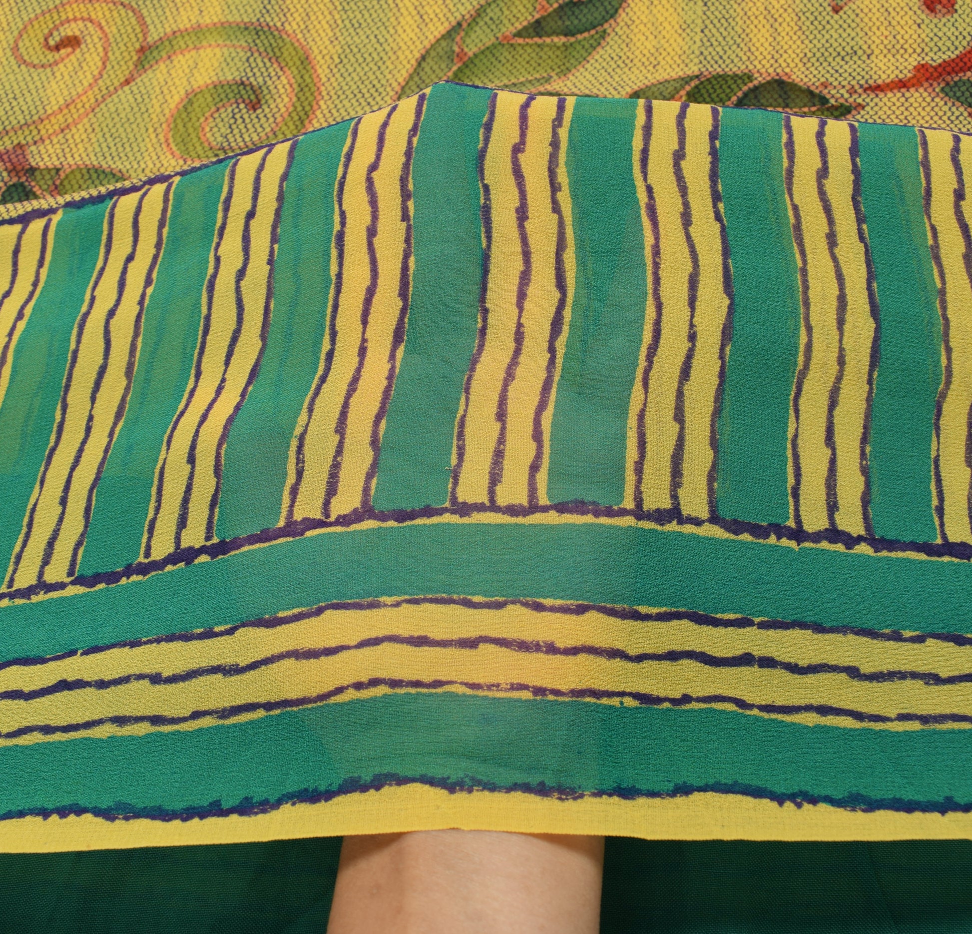 Celebrate traditional artistry with this exquisite Green & Yellow 100% Pure Georgette Silk saree, known for its timeless Stripes designs and fine Printed work. It is perfect for special occasions, creative repurposing, or as a beautiful heirloom gift. Measuring approximately 200 Inch in length and 45 Inch in width, this sari offers versatile styling options. It is lightweight, weighing just 355 Grams (Actual Product weight), making it easy to drape and carry for long hours. The natural breathability and luxurious drape of 100% pure georgette silk make it a prized choice for those who appreciate fine craftsmanship and vintage fashion.