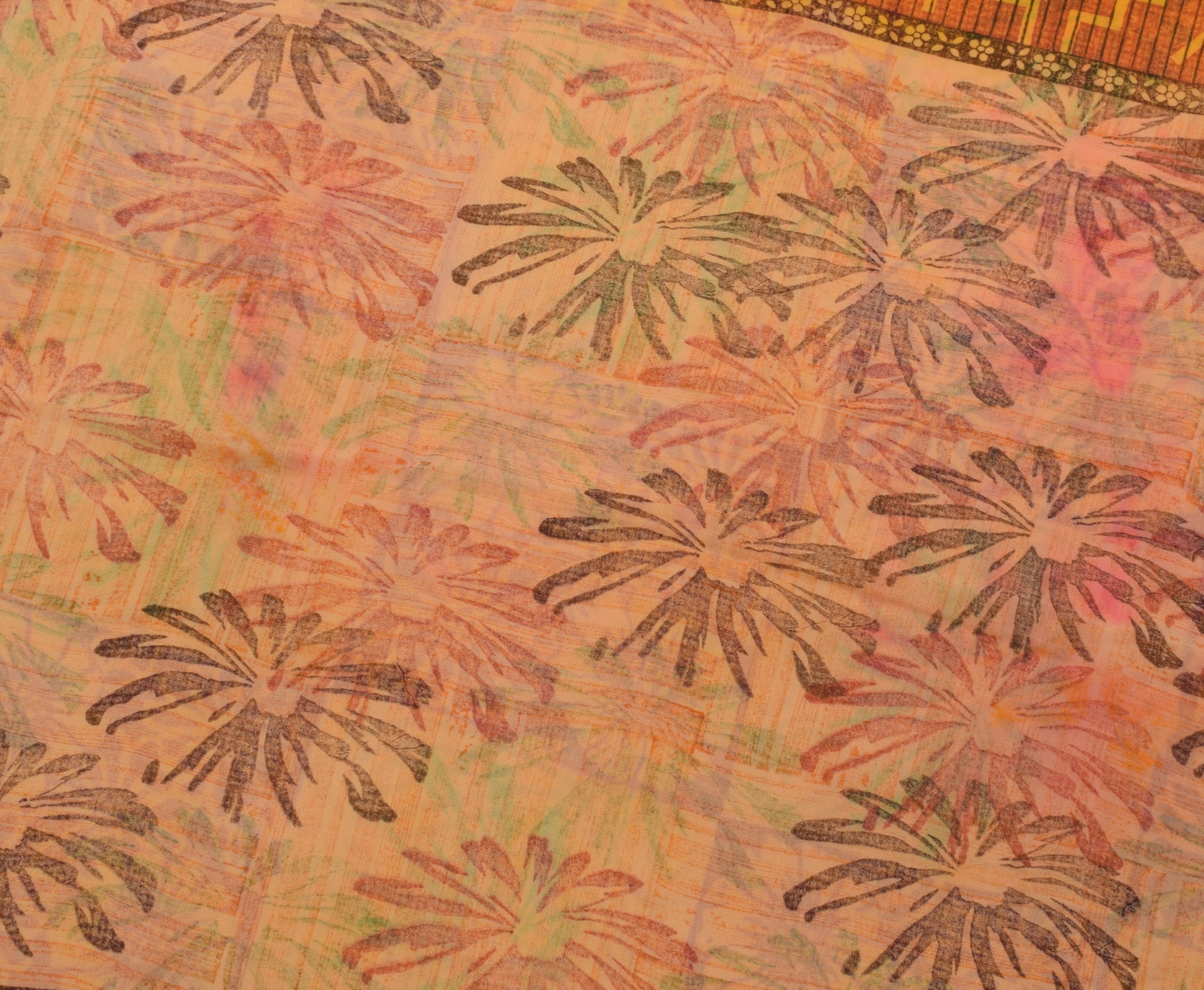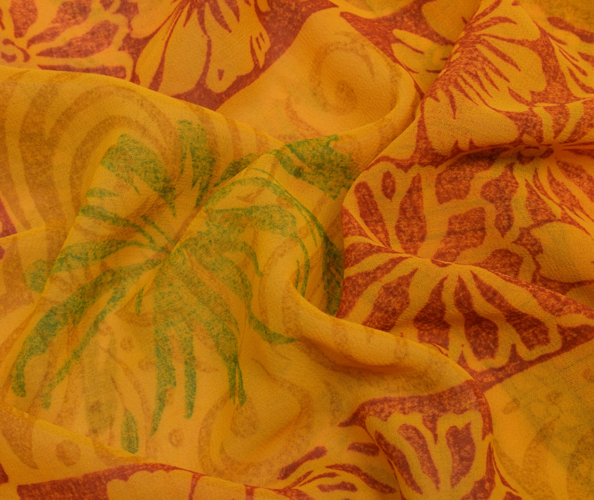 Sushila Vintage Yellow Saree Blend Georgette Silk Printed Floral Craft Fabric