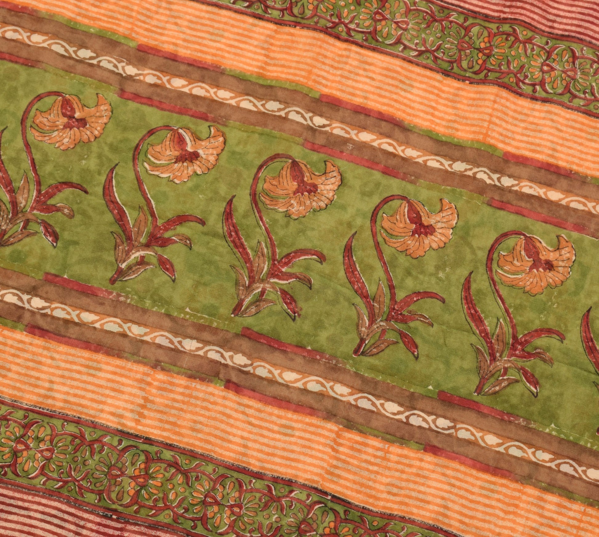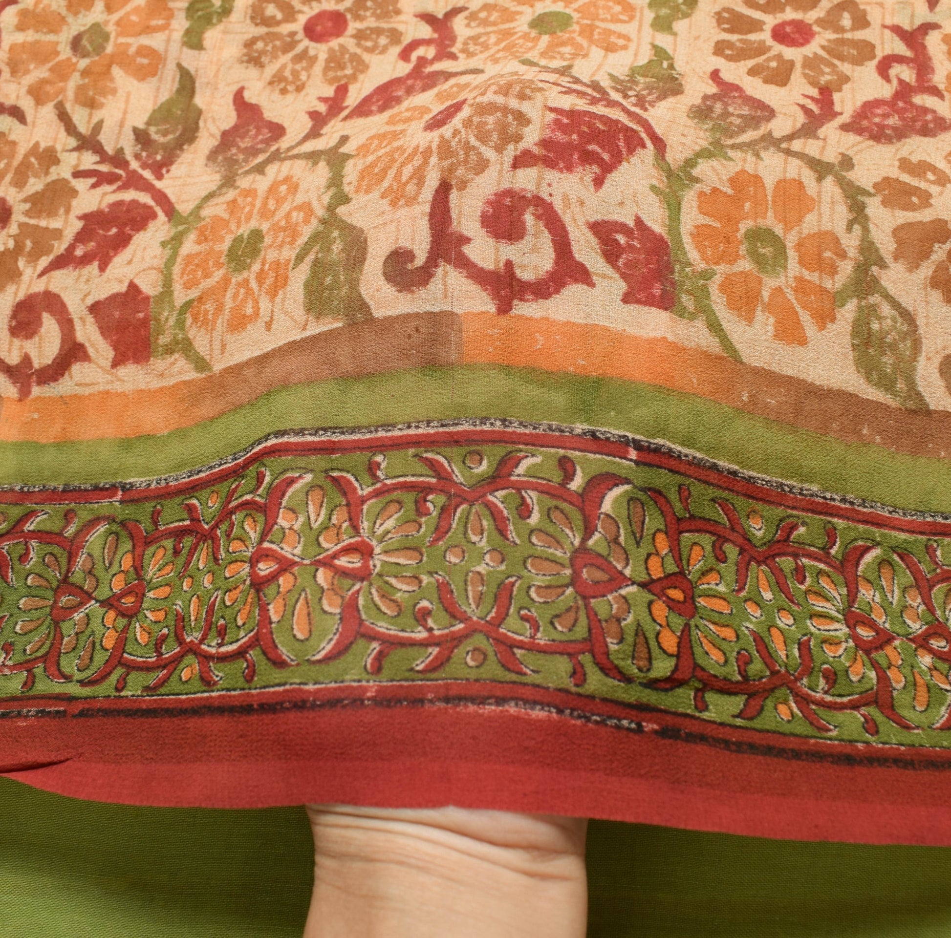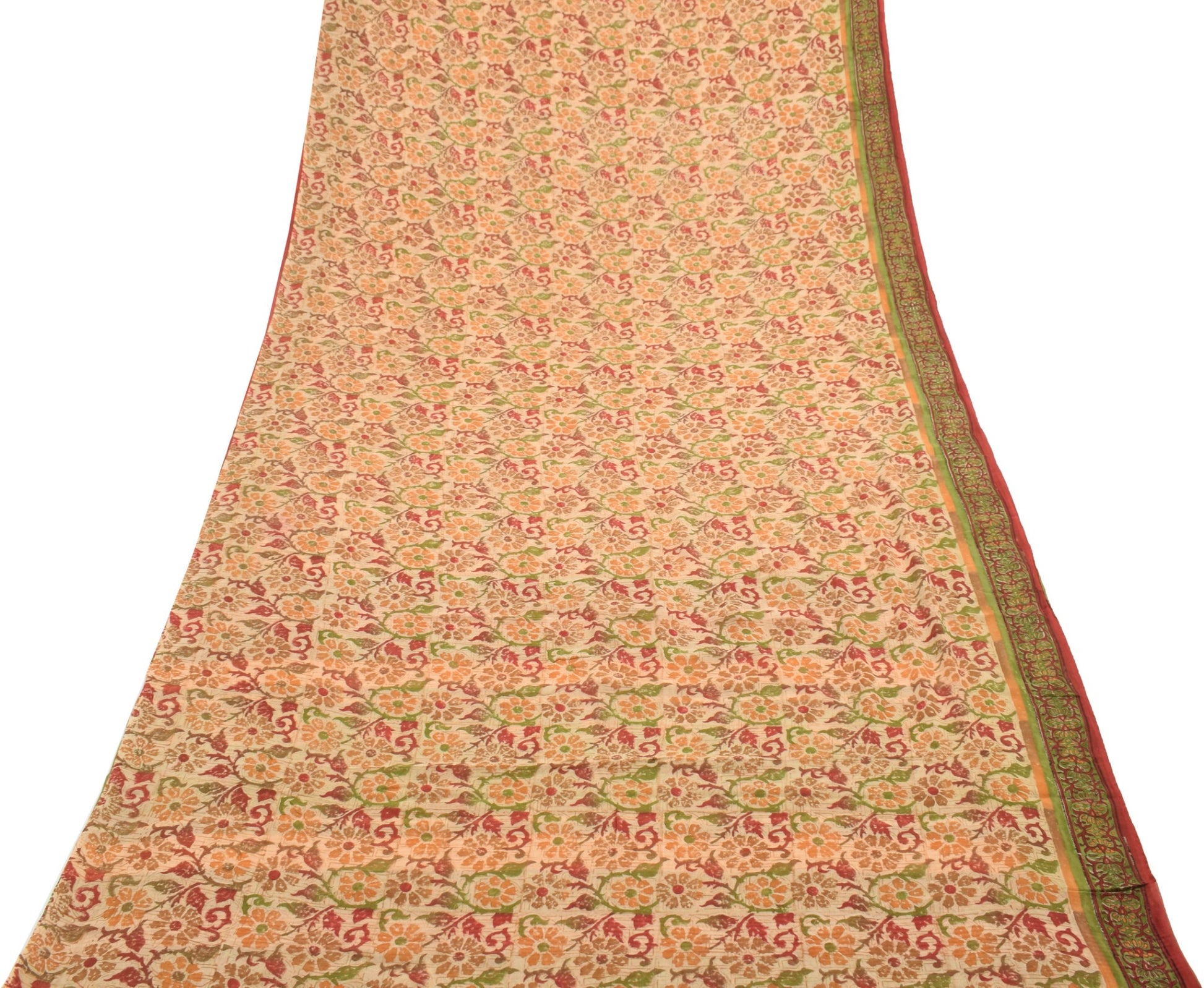 Sushila Vtg Beige Saree Georgette Silk Hand Block Printed Floral Craft Fabric