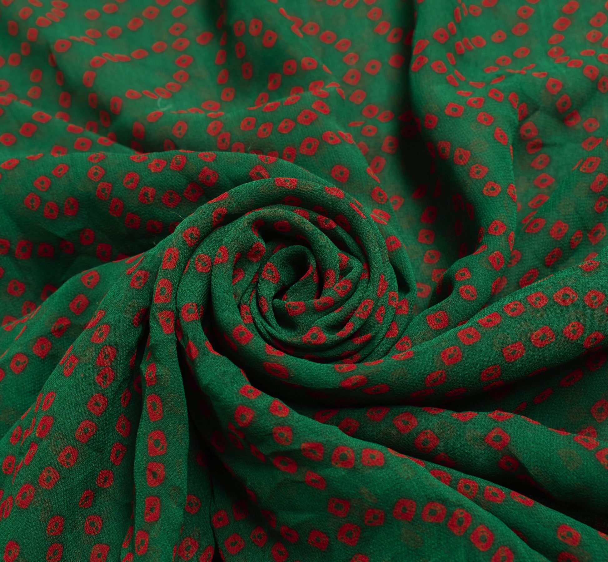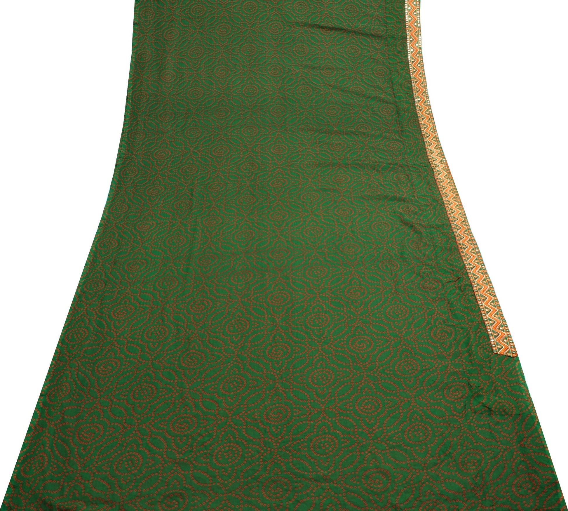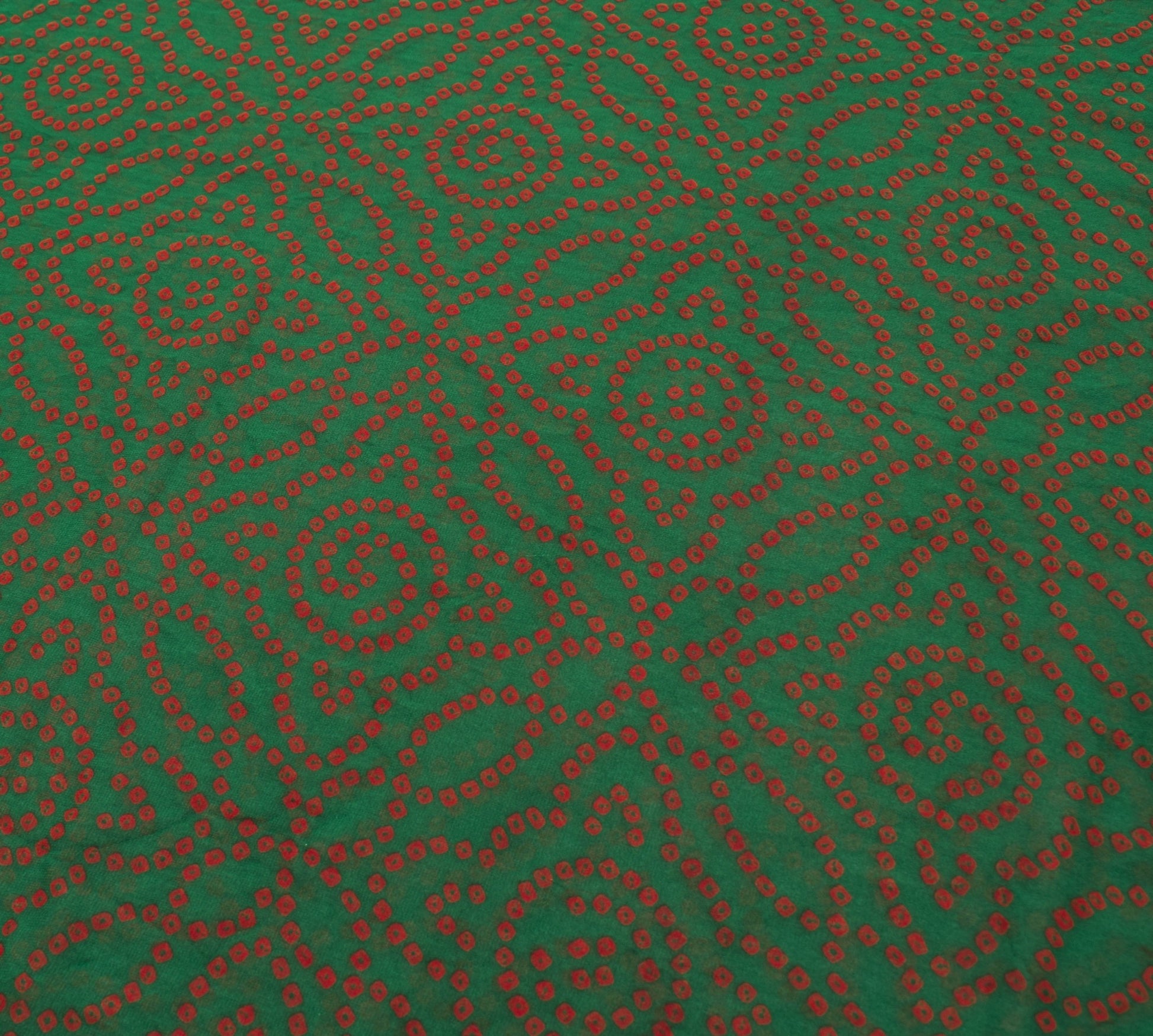 Embrace the charm of vintage textiles with this Bandhani Printed with Mirror Work Beaded Embroidered Lace 100% Pure Georgette Silk saree, showcasing graceful As Per images motifs and intricate Green embellishments. It is perfect for special occasions, creative repurposing, or as a beautiful heirloom gift. Measuring approximately 198 Inch in length and 43 Inch in width, this sari offers versatile styling options. It is lightweight, weighing just 535 Grams (Actual Product weight), making it easy to drape and carry for long hours. The natural breathability and luxurious drape of 100% pure georgette silk make it a prized choice for those who appreciate fine craftsmanship and vintage fashion.