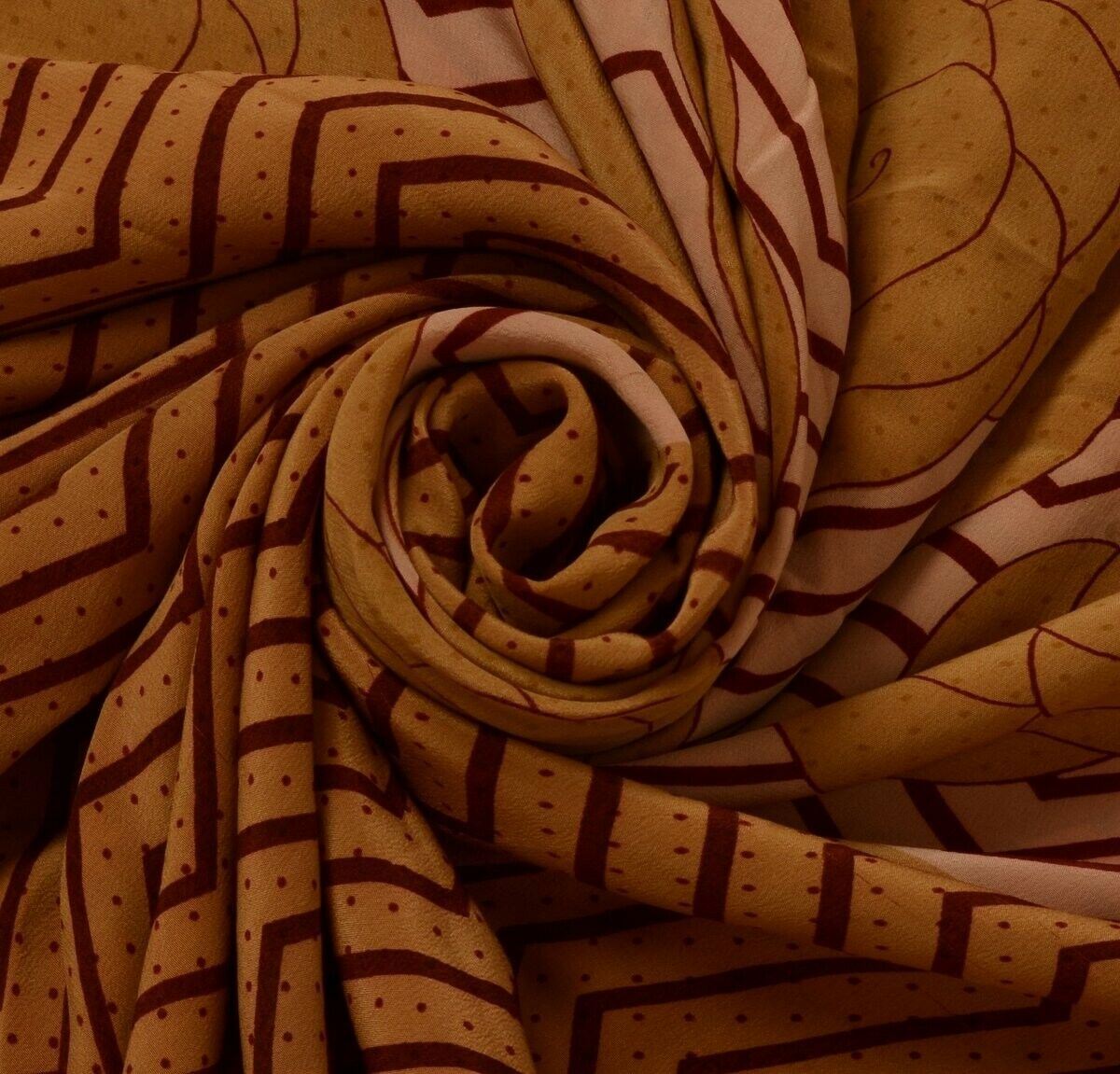Vintage Indian Saree 100% Pure Crepe Silk Printed Soft Scrap Fabric for Craft
