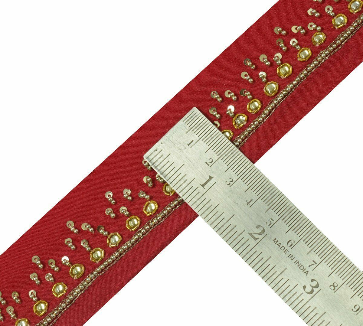 Vintage Saree Border Indian Craft Trim Antique Hand Beaded Ribbon Lace Maroon