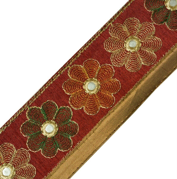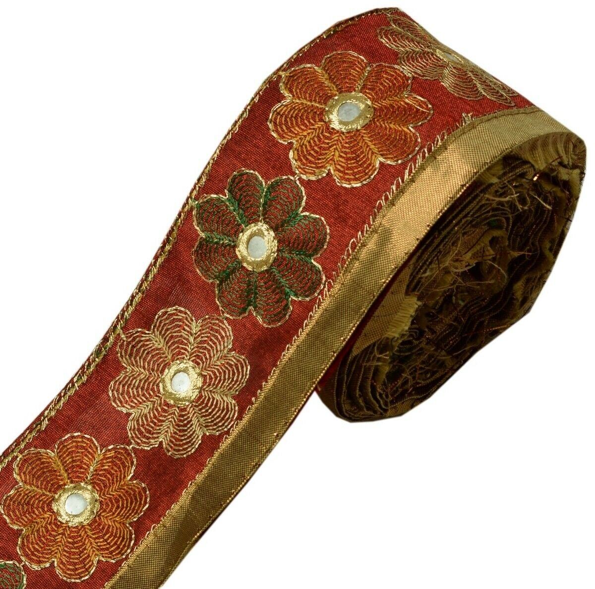 Vintage Saree Border Indian Craft Trim Floral Embroidered Maroon Ribbon Lace