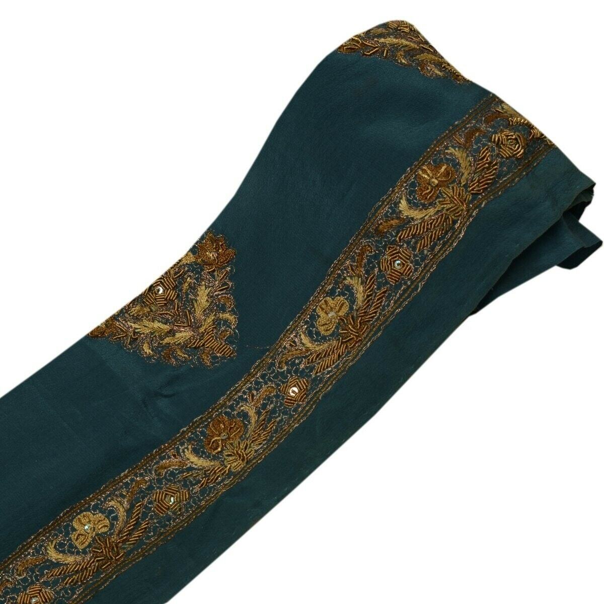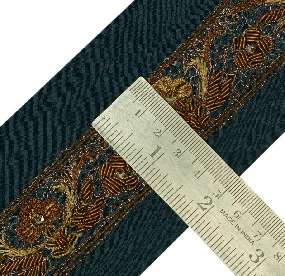 Vintage Saree Border Indian Craft Trim Hand Beaded Embroidered Ribbon Lace Gray